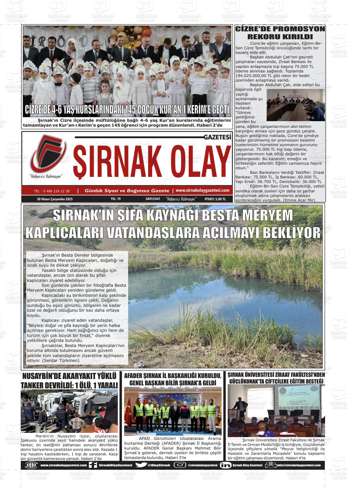 Şırnak Yerel Gazeteleri 08 Ekim 2025, Çarşamba Günü Manşeti