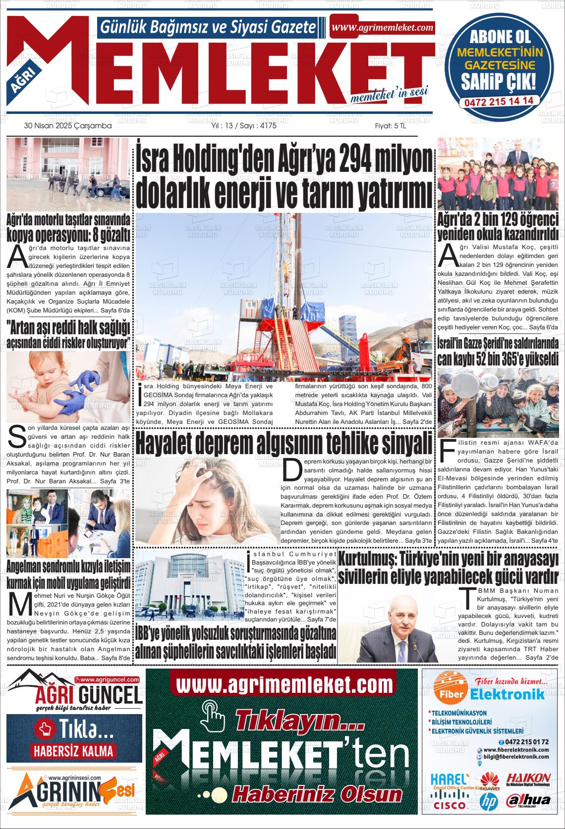Ağrı Yerel Gazeteleri 08 Ekim 2025, Çarşamba Günü Manşeti