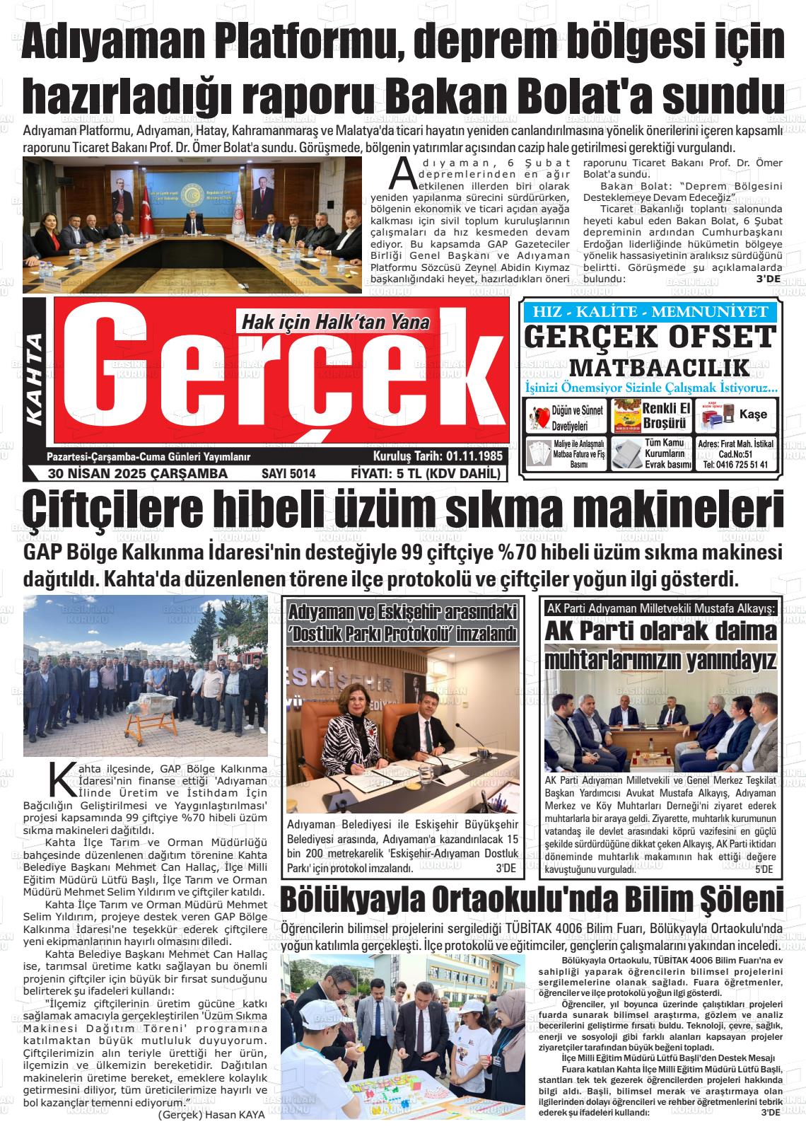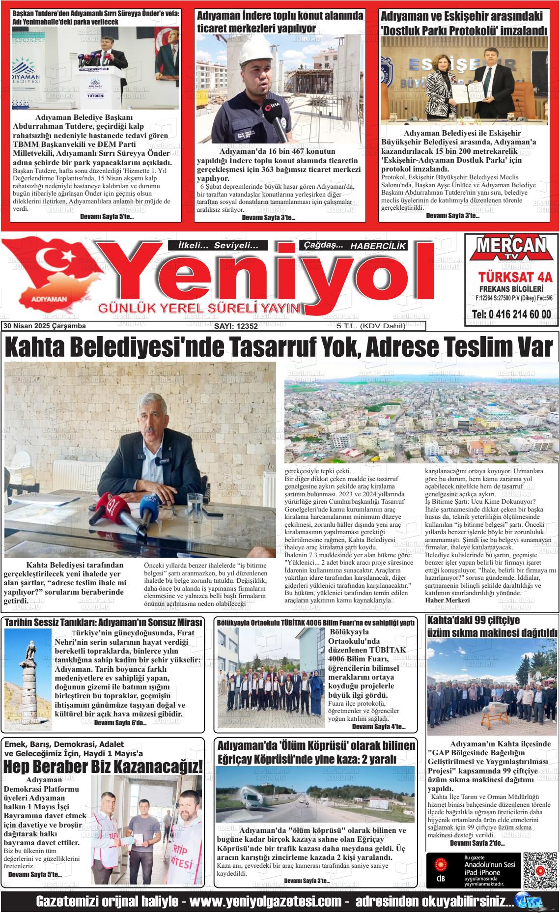 Adıyaman Yerel Gazeteleri 08 Ekim 2025, Çarşamba Günü Manşeti