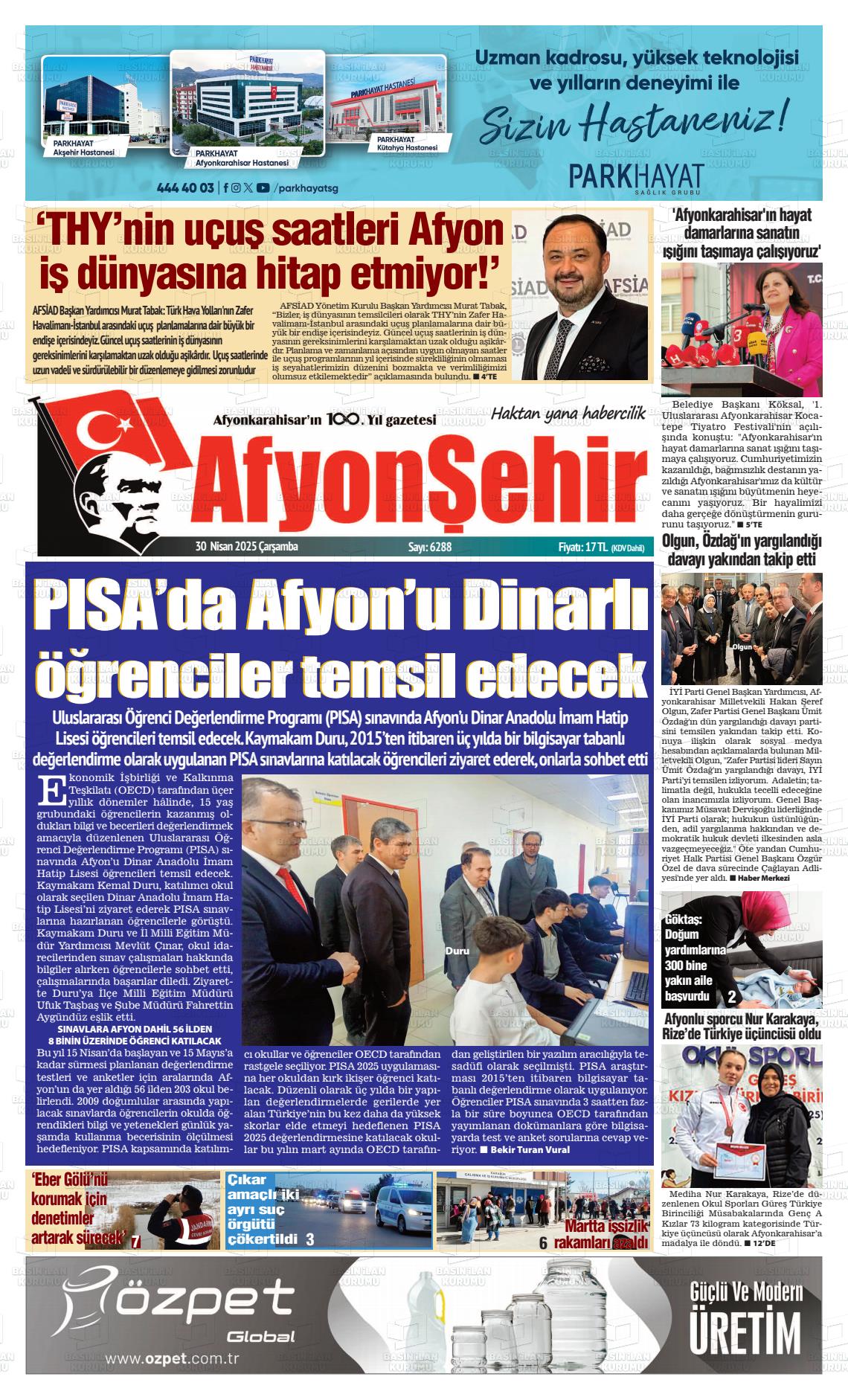 Afyonkarahİsar Yerel Gazeteleri 08 Ekim 2025, Çarşamba Günü Manşeti