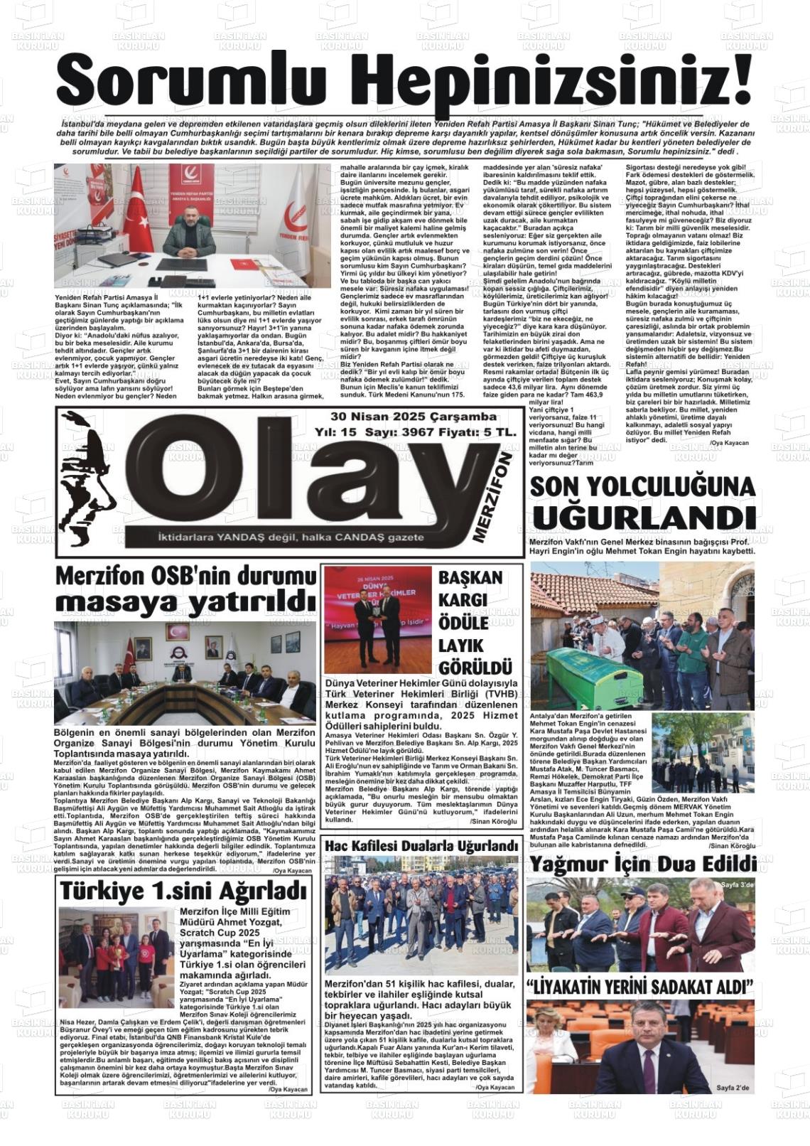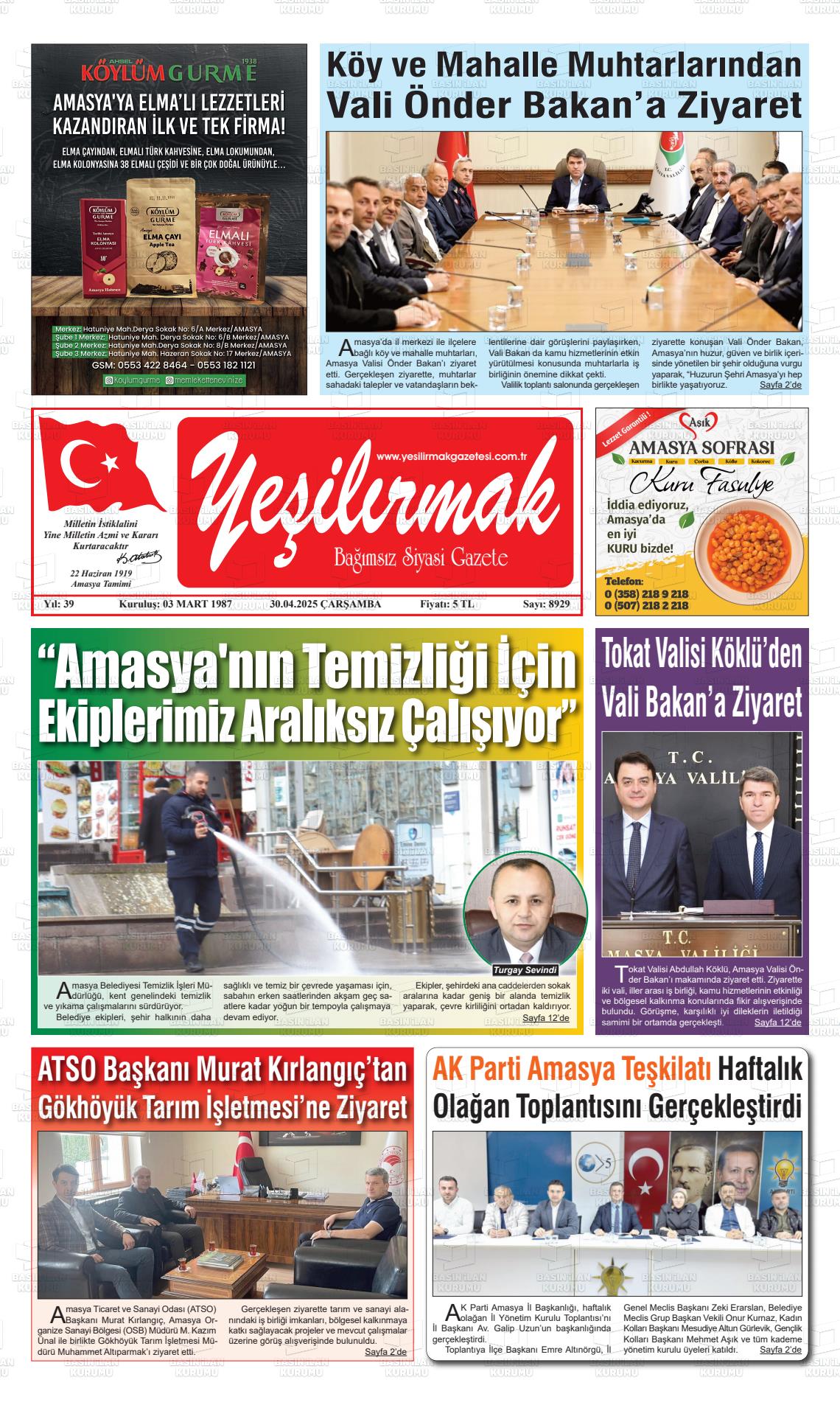 Amasya Yerel Gazeteleri 08 Ekim 2025, Çarşamba Günü Manşeti