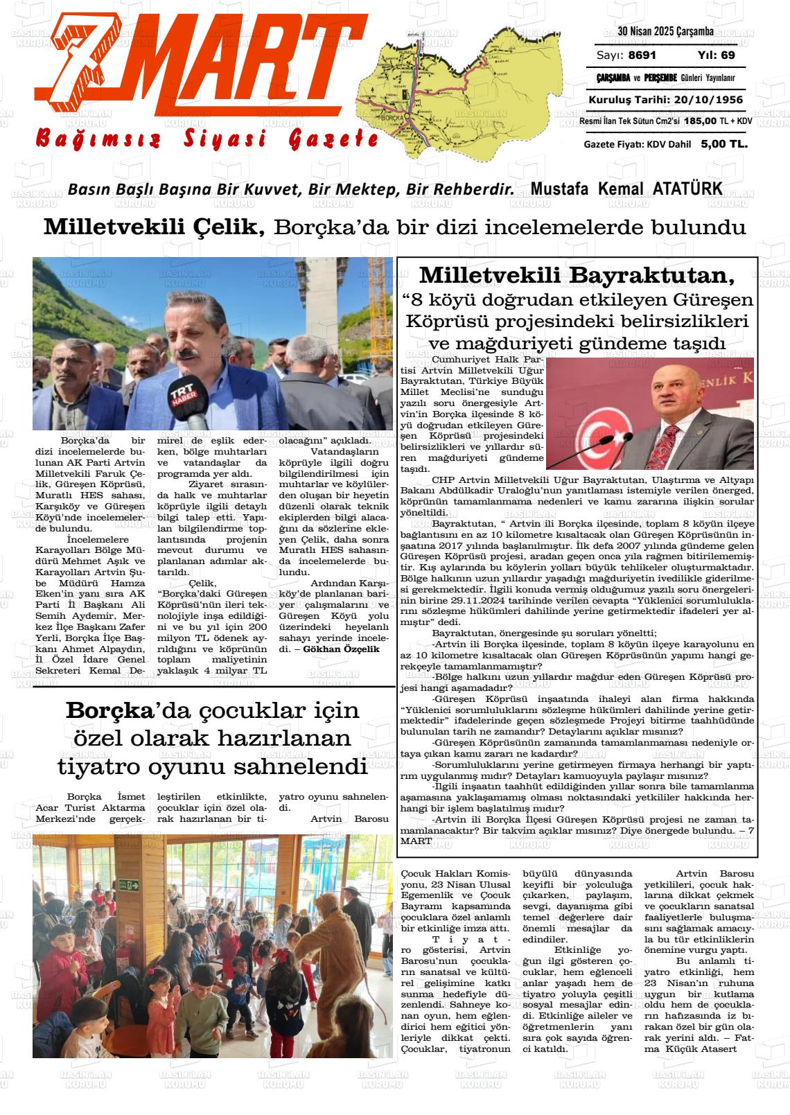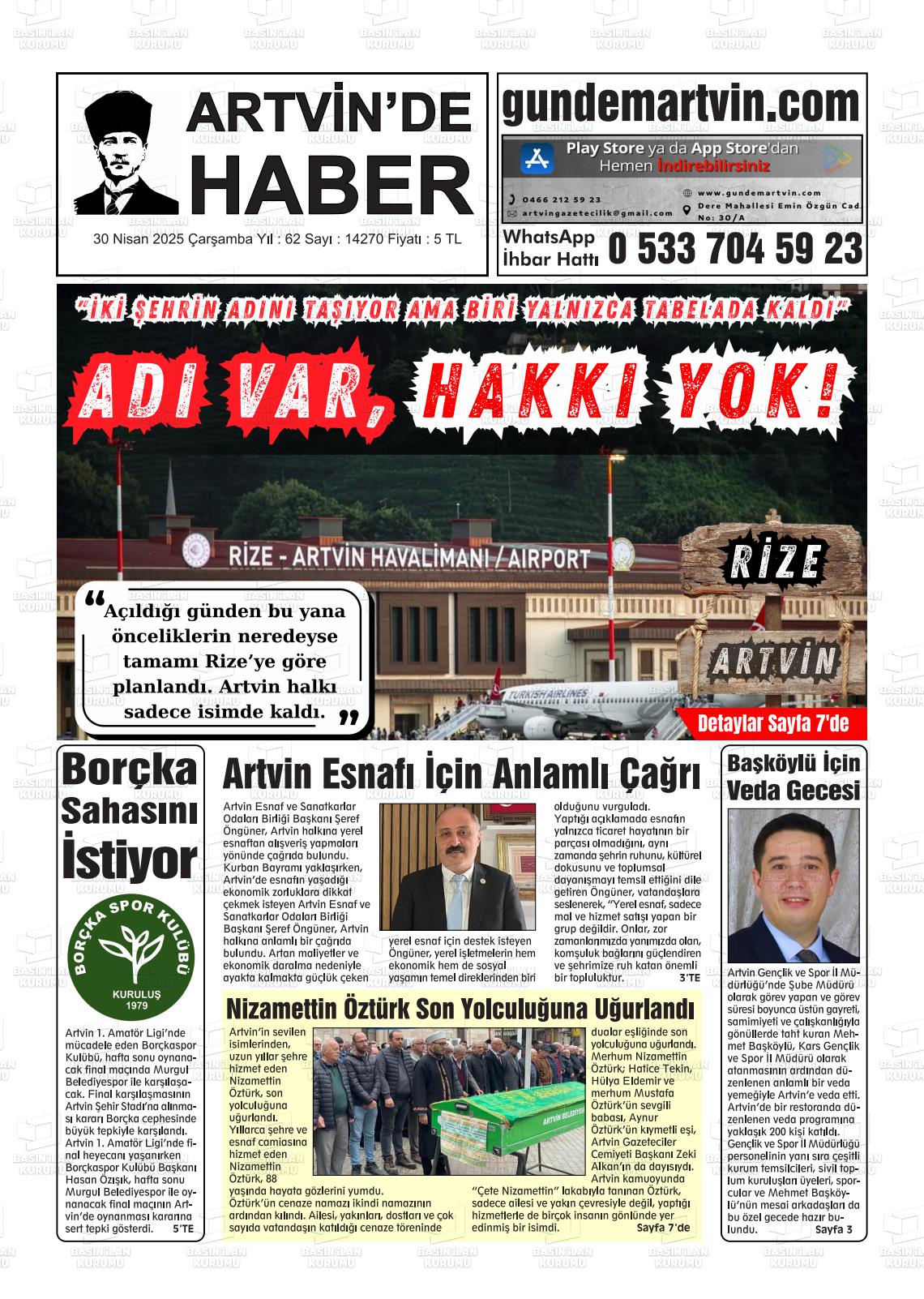 Artvİn Yerel Gazeteleri 08 Ekim 2025, Çarşamba Günü Manşeti