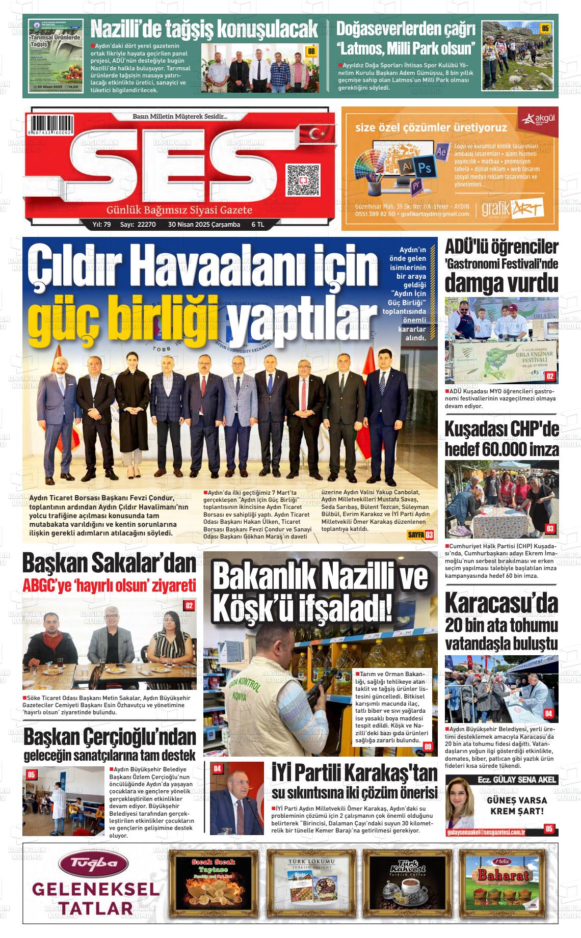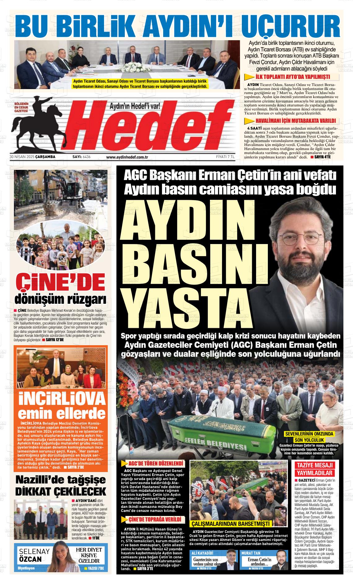 Aydın Yerel Gazeteleri 08 Ekim 2025, Çarşamba Günü Manşeti