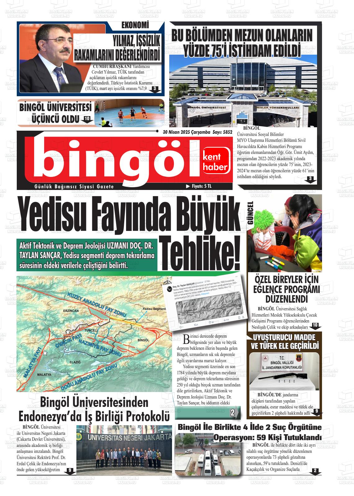 Bİngöl Yerel Gazeteleri 08 Ekim 2025, Çarşamba Günü Manşeti
