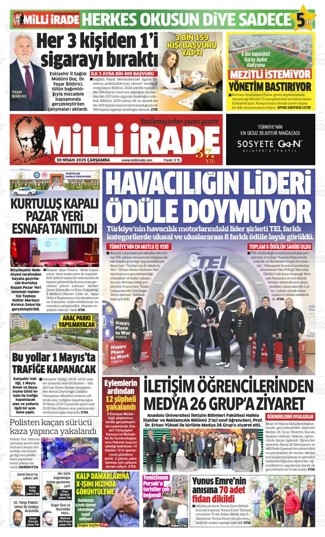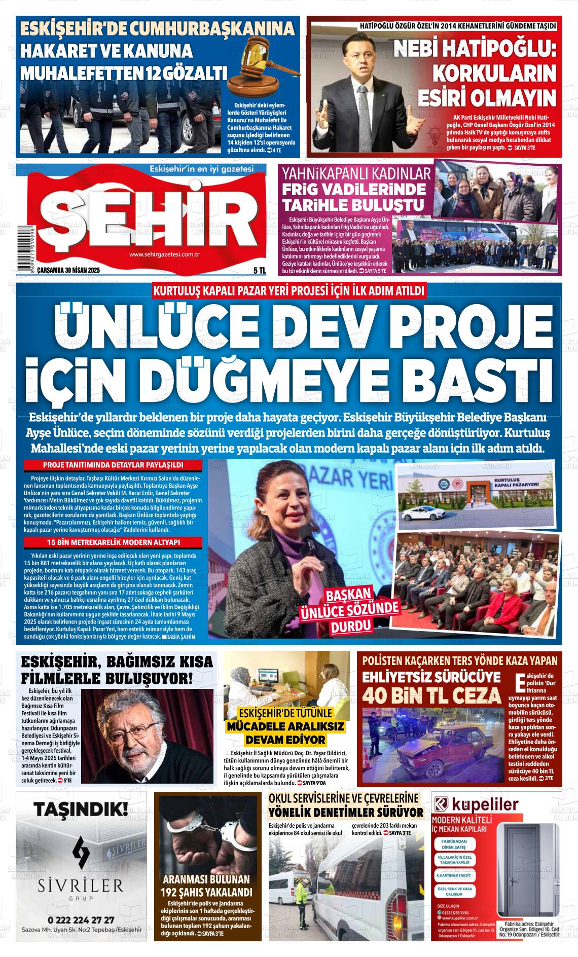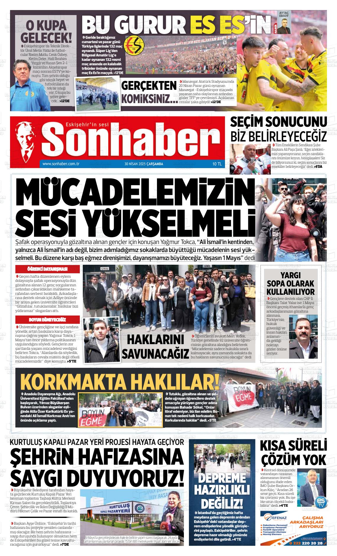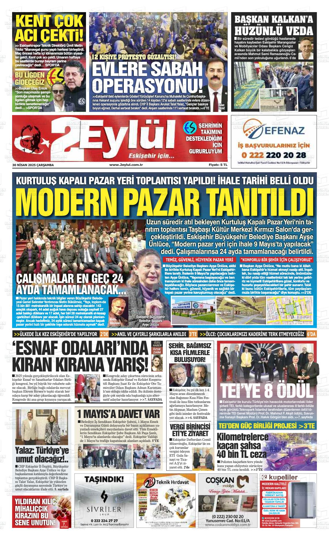 Eskİşehİr Yerel Gazeteleri 08 Ekim 2025, Çarşamba Günü Manşeti