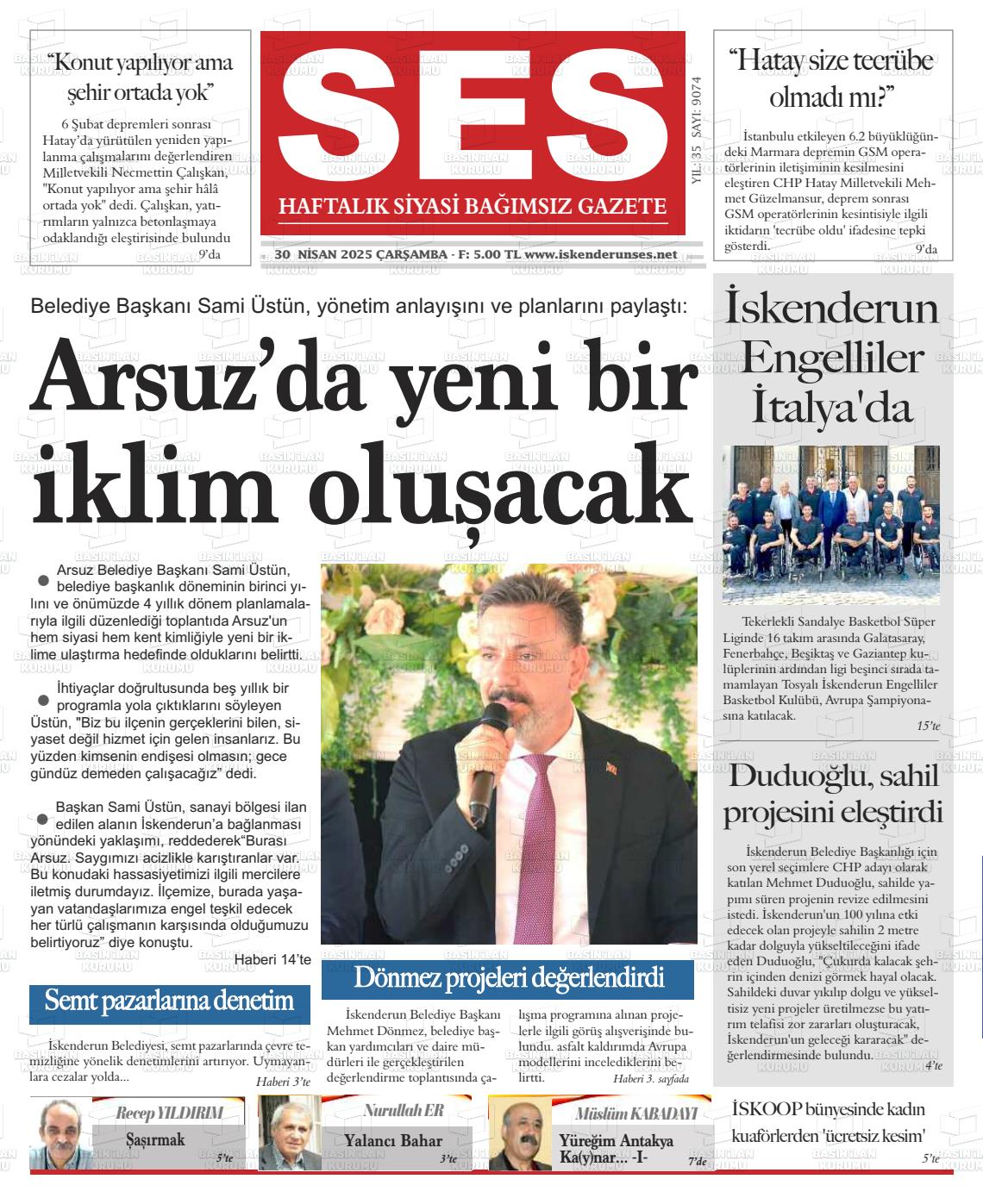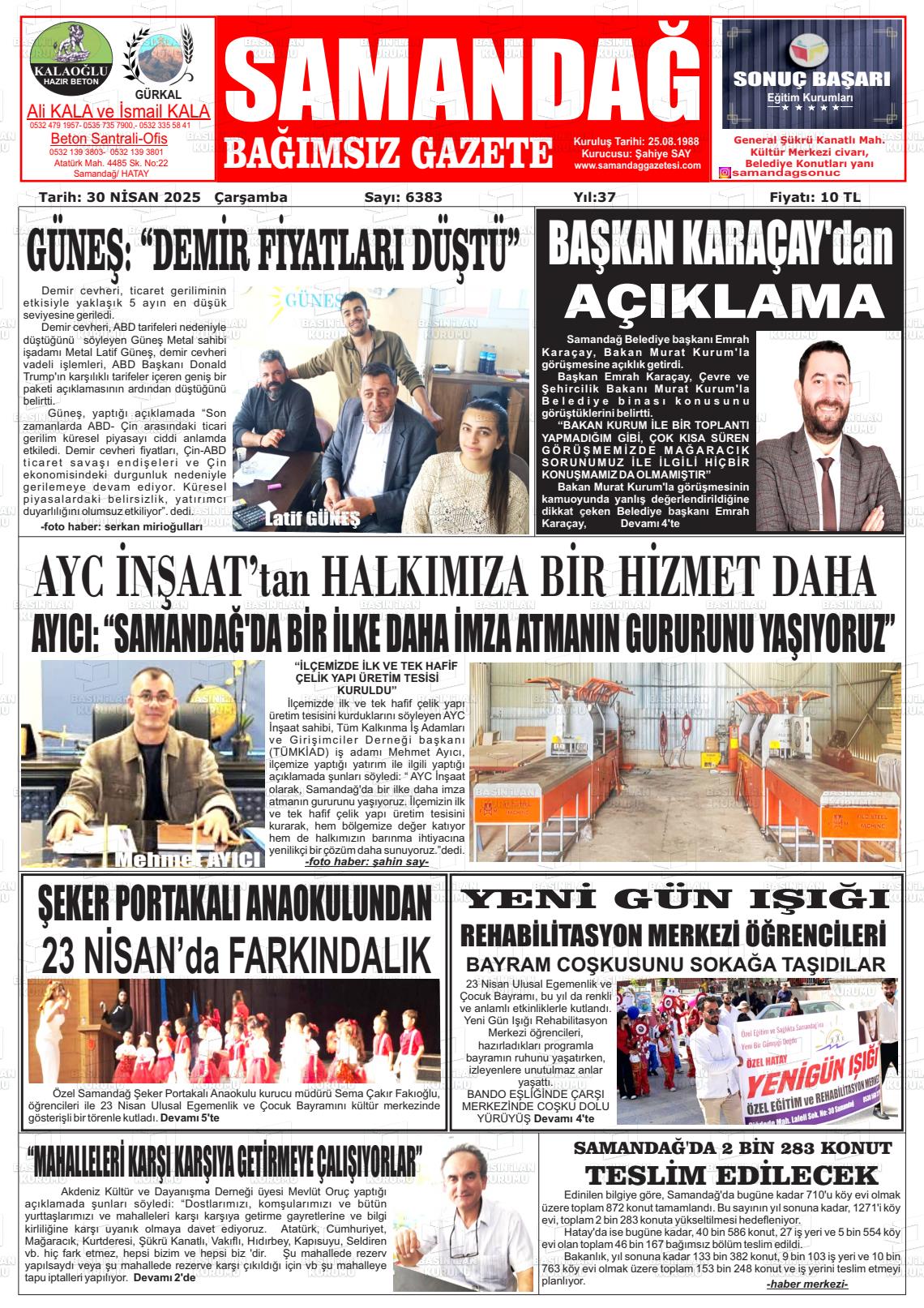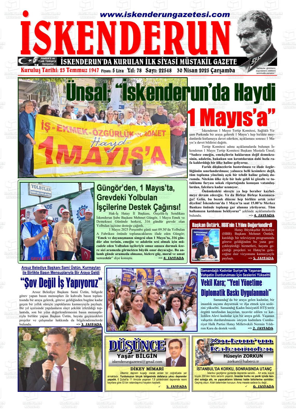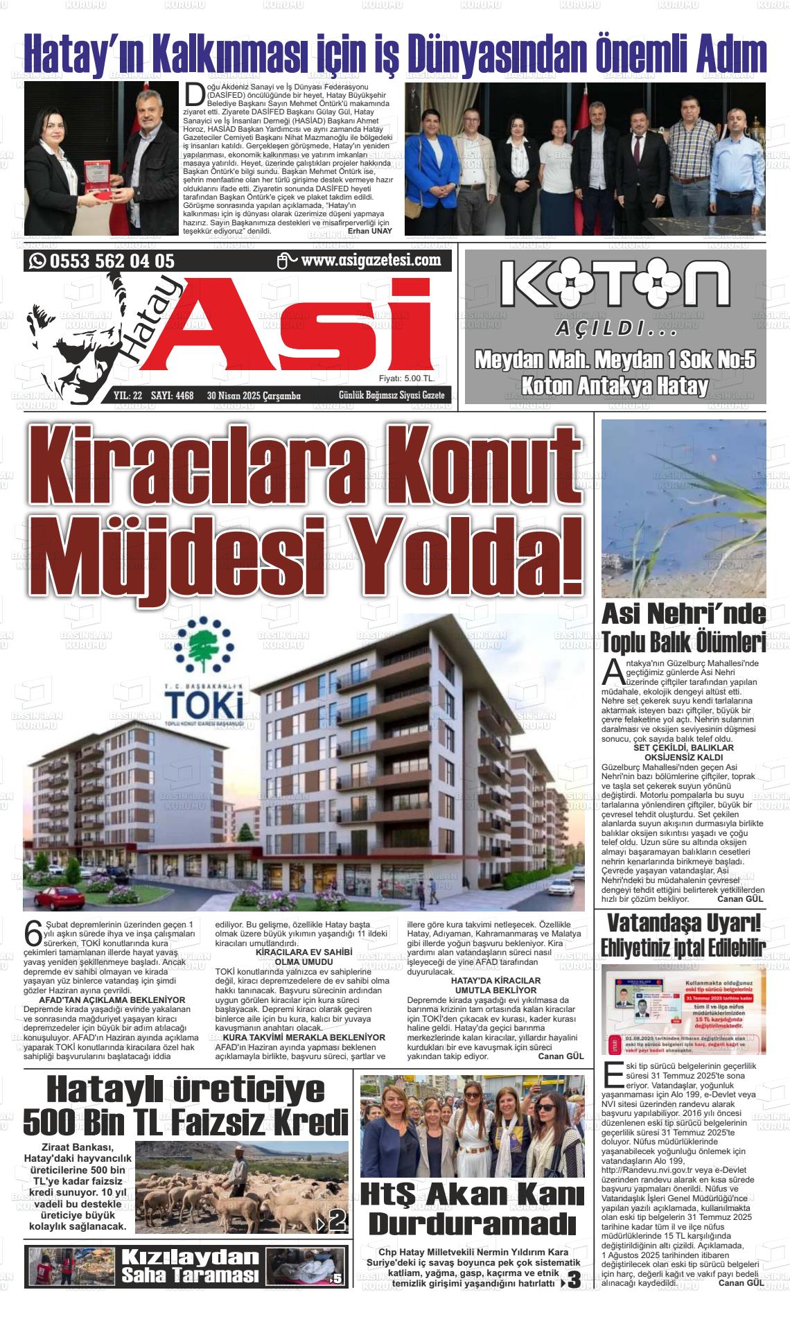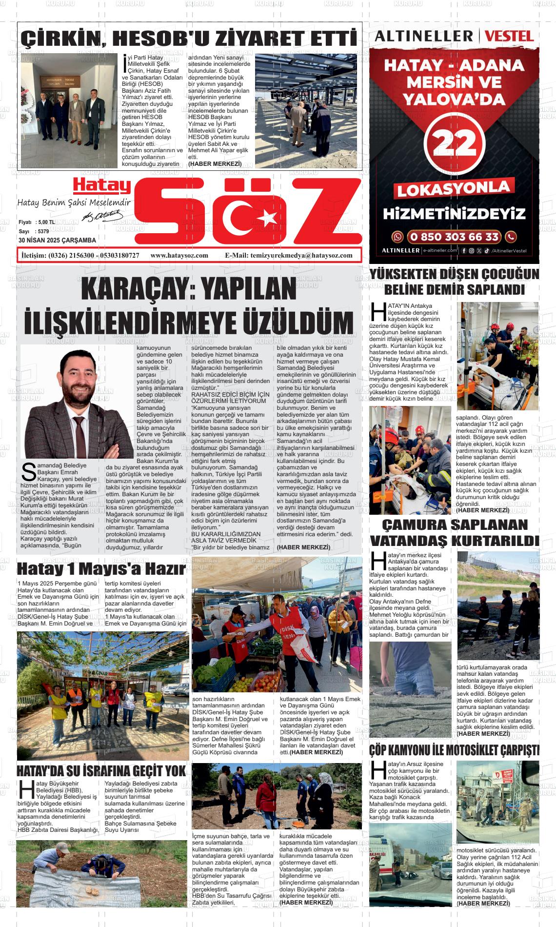 Hatay Yerel Gazeteleri 08 Ekim 2025, Çarşamba Günü Manşeti