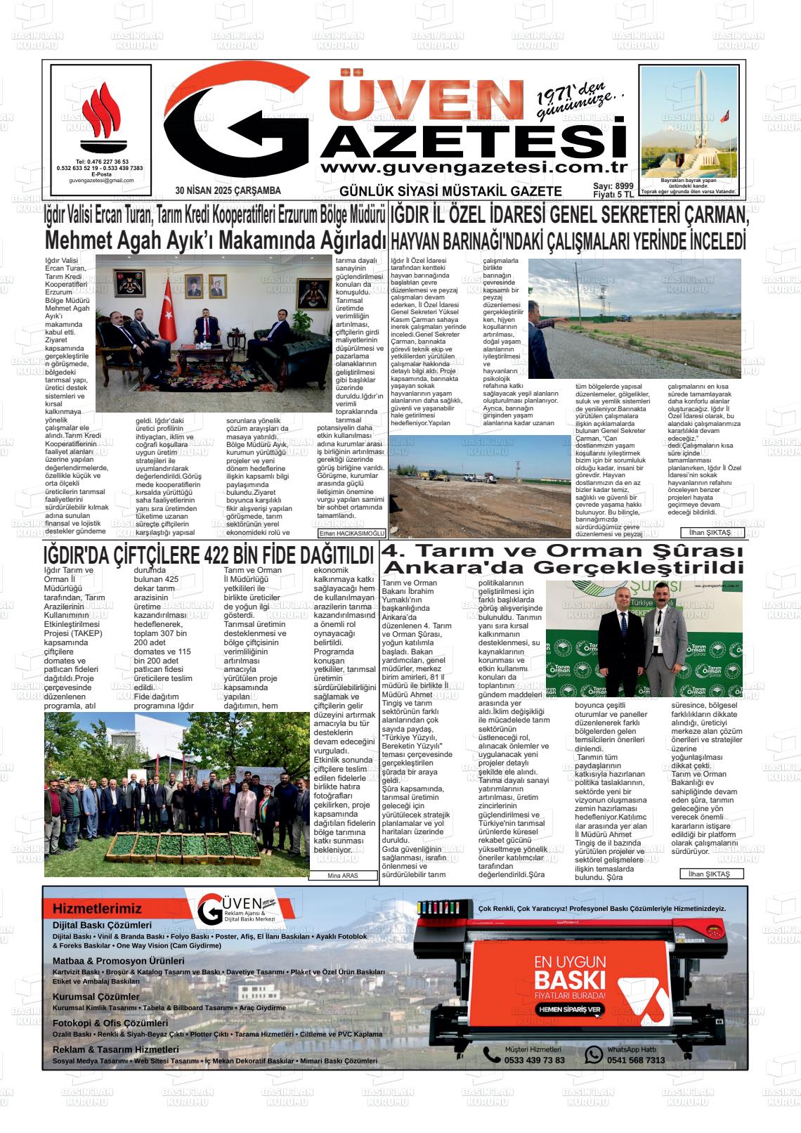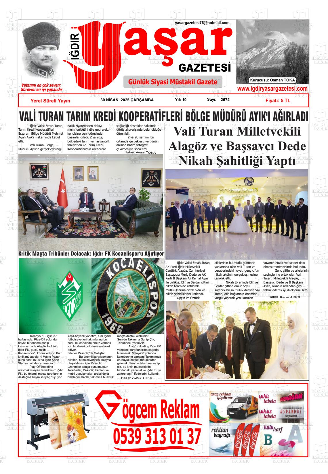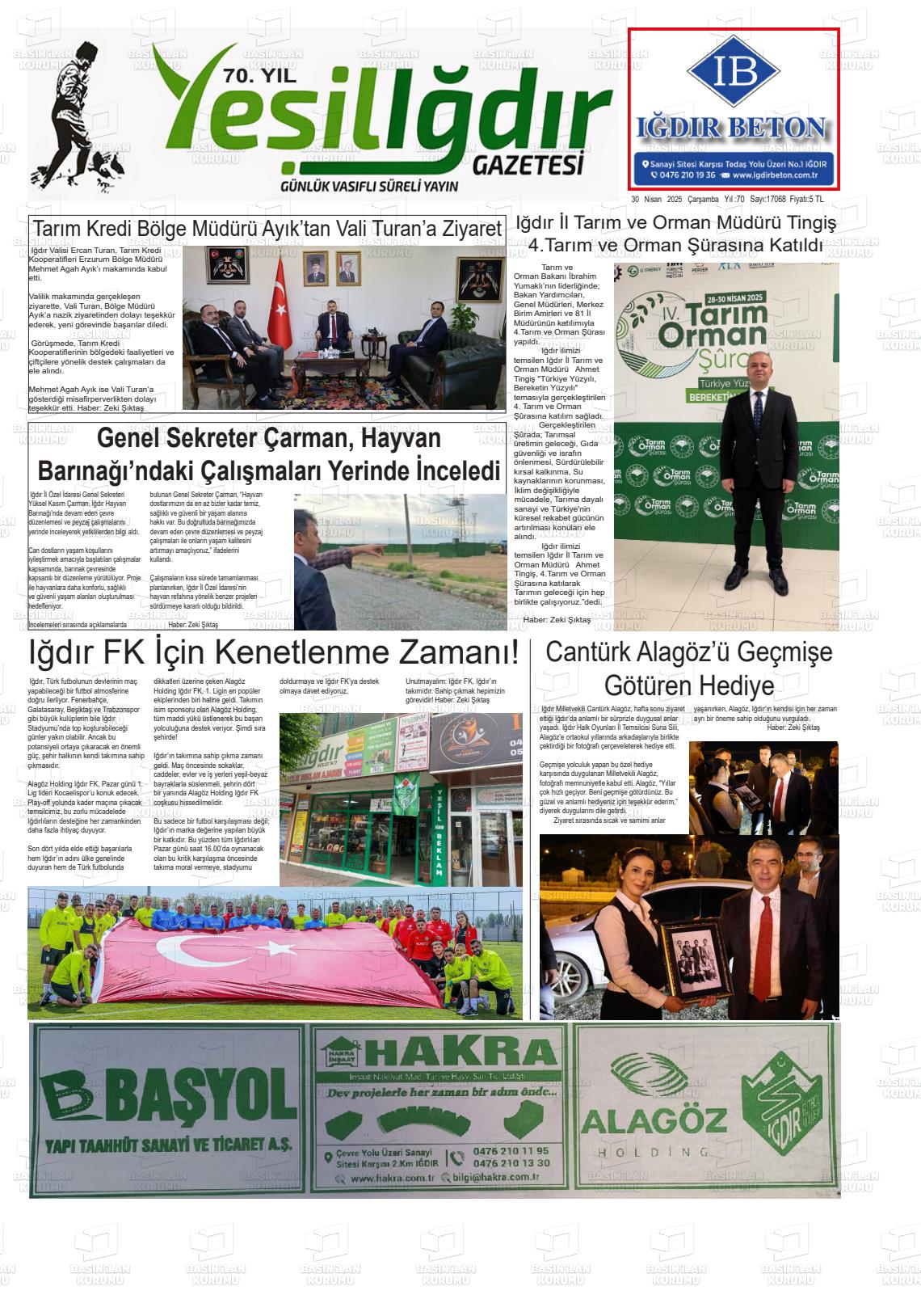 Iğdır Yerel Gazeteleri 08 Ekim 2025, Çarşamba Günü Manşeti