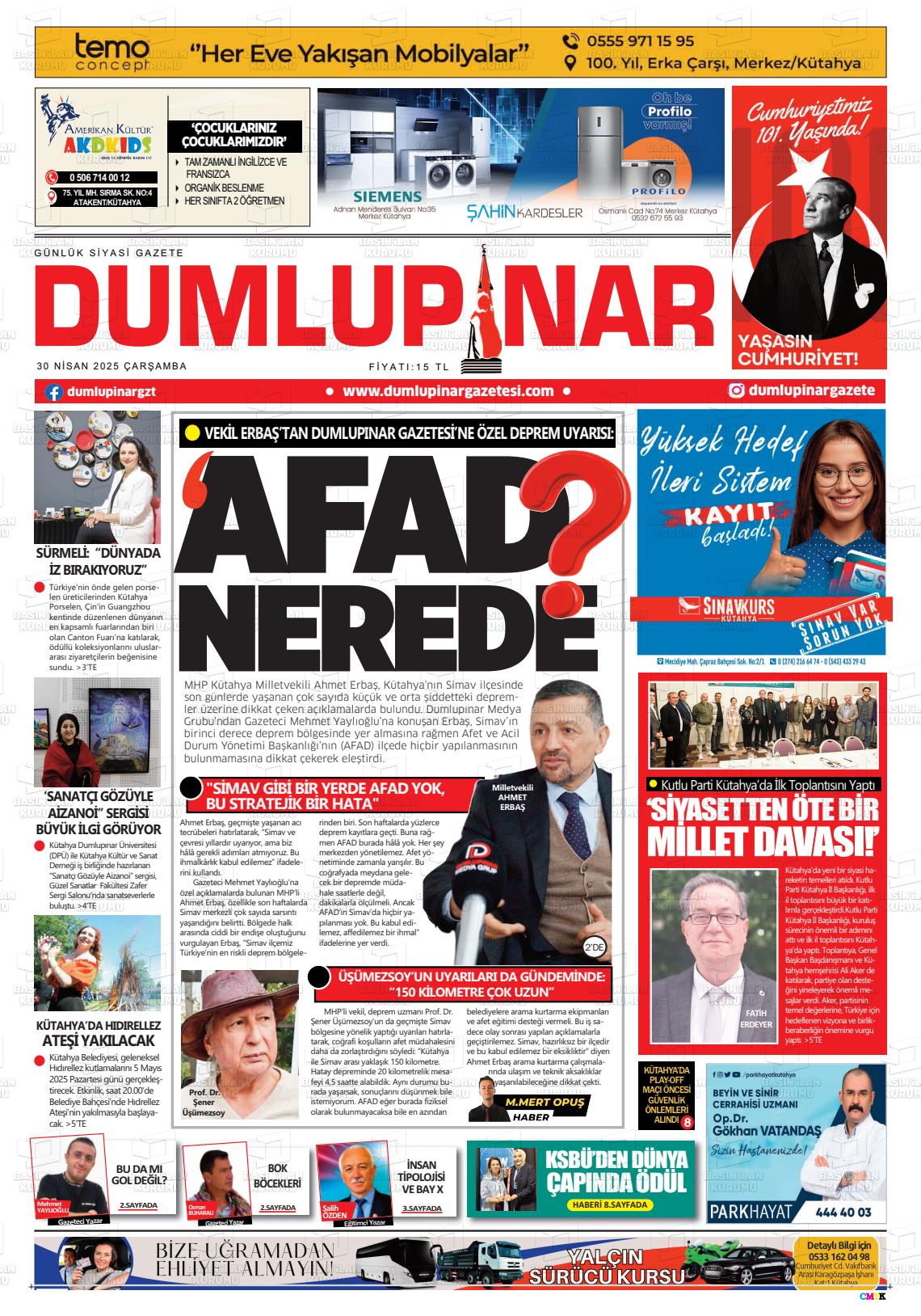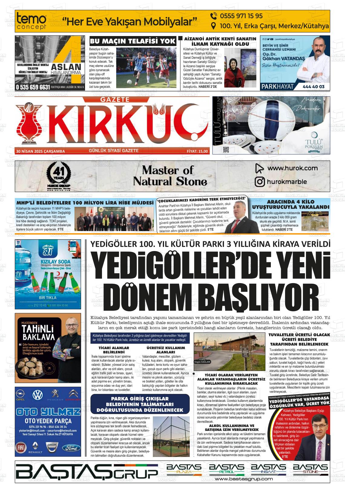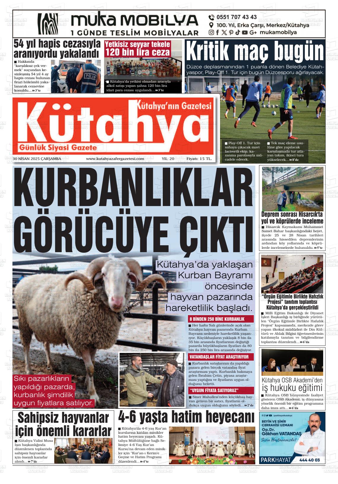 Kütahya Yerel Gazeteleri 08 Ekim 2025, Çarşamba Günü Manşeti