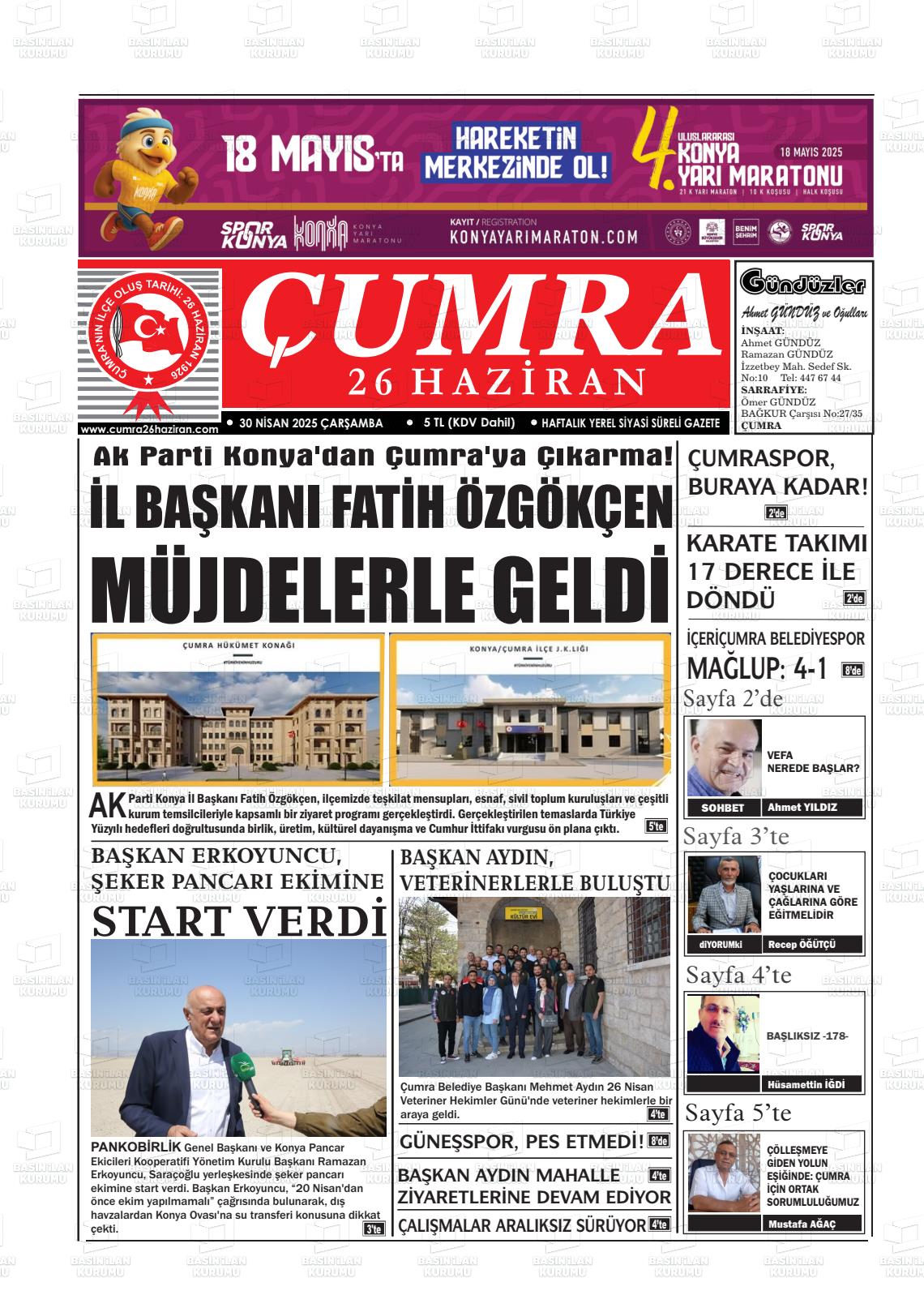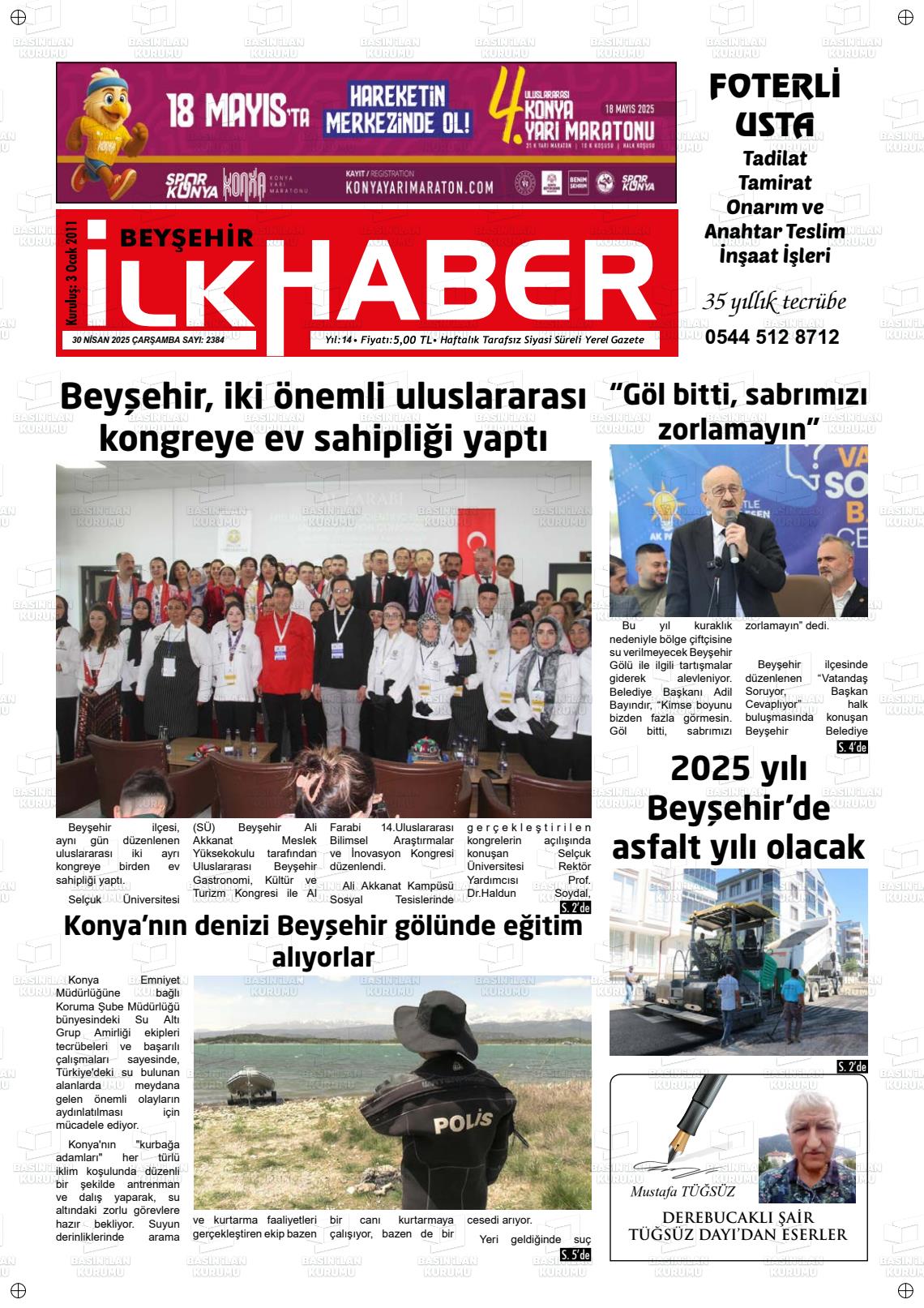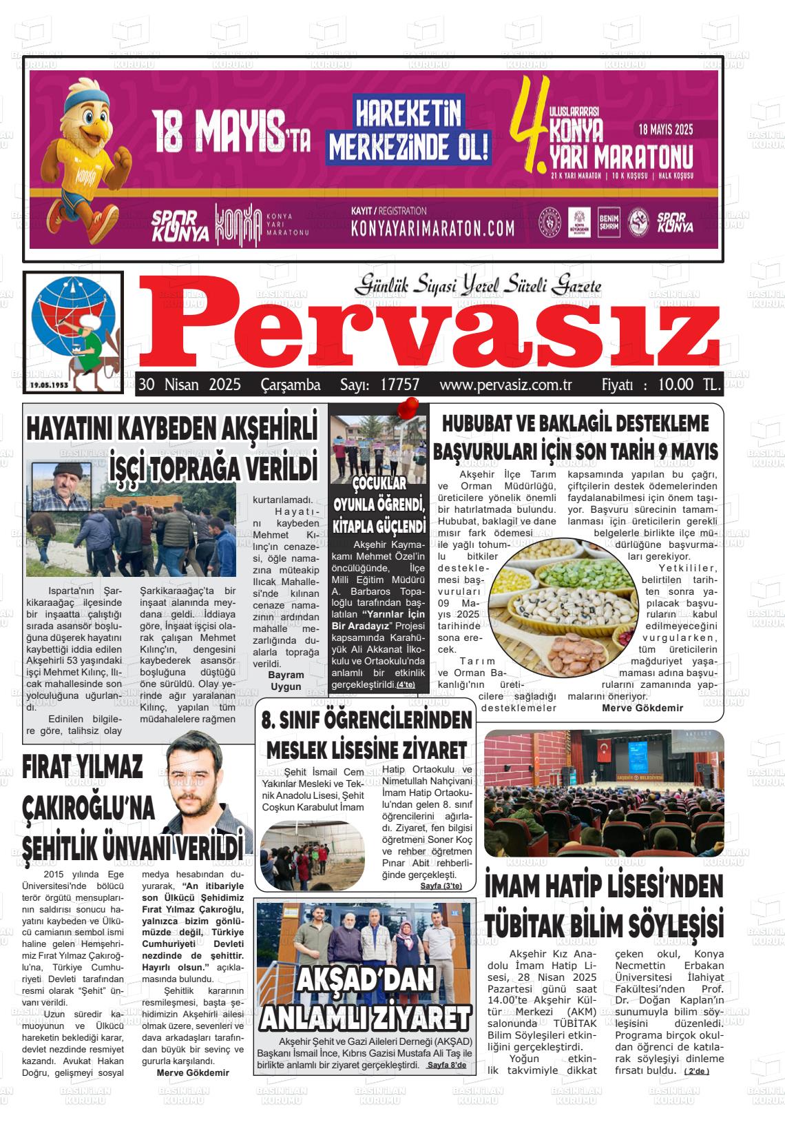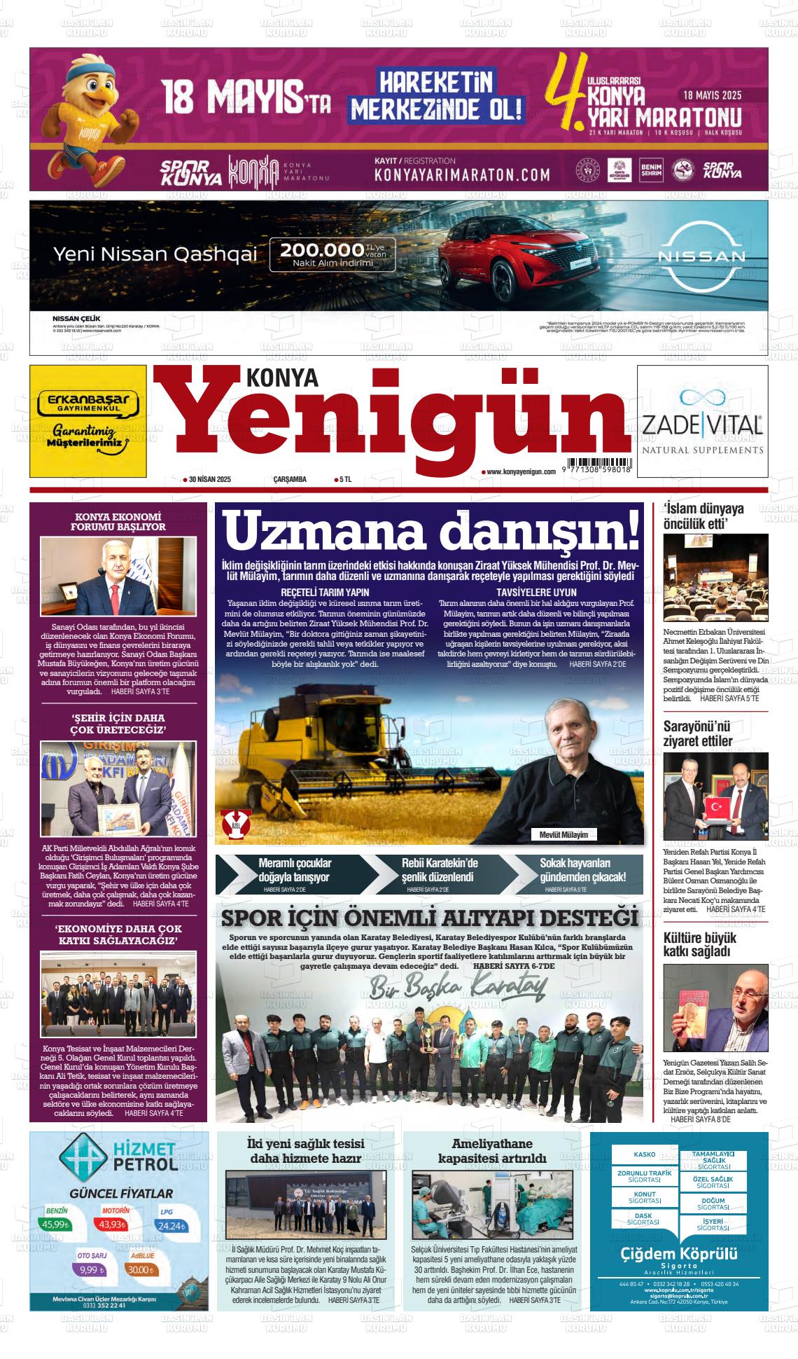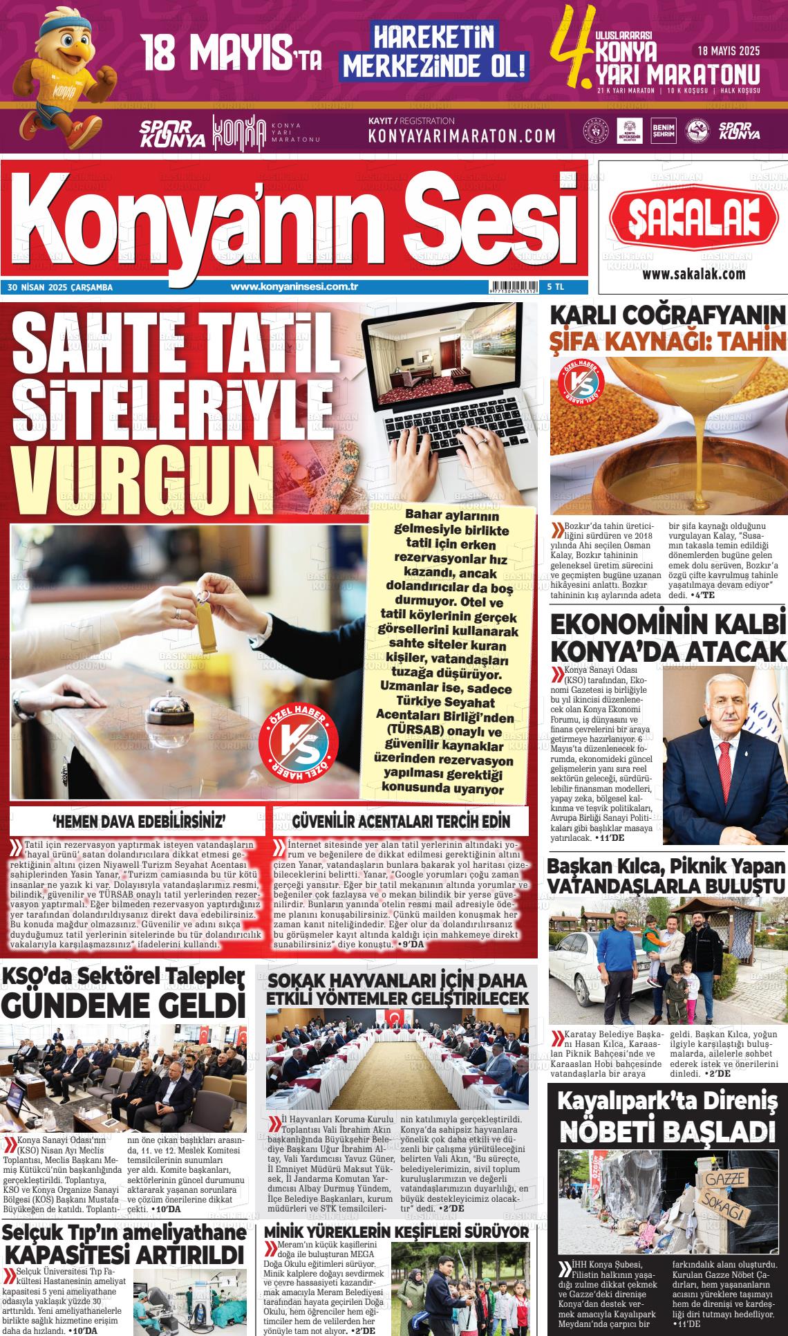 Konya Yerel Gazeteleri 08 Ekim 2025, Çarşamba Günü Manşeti