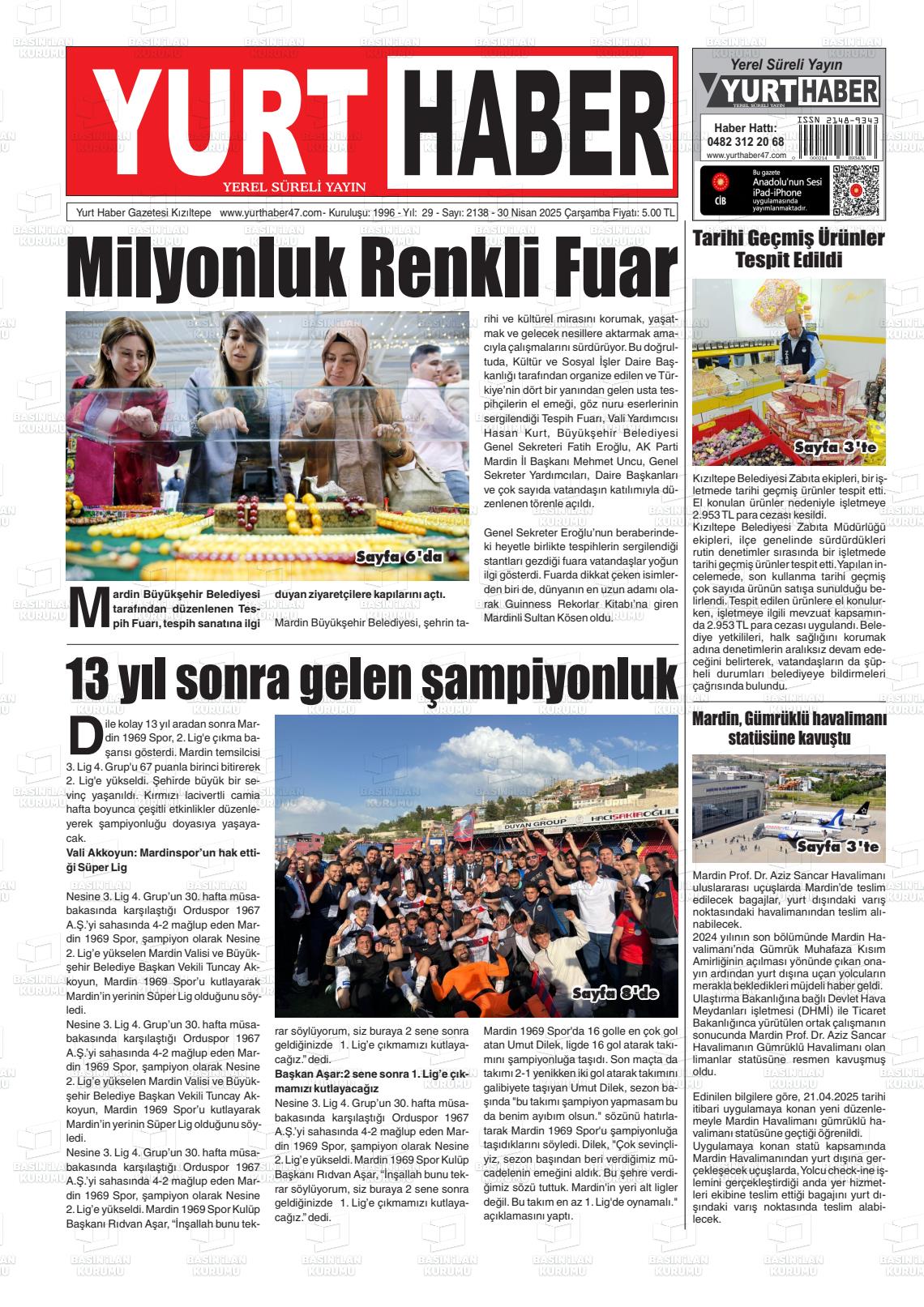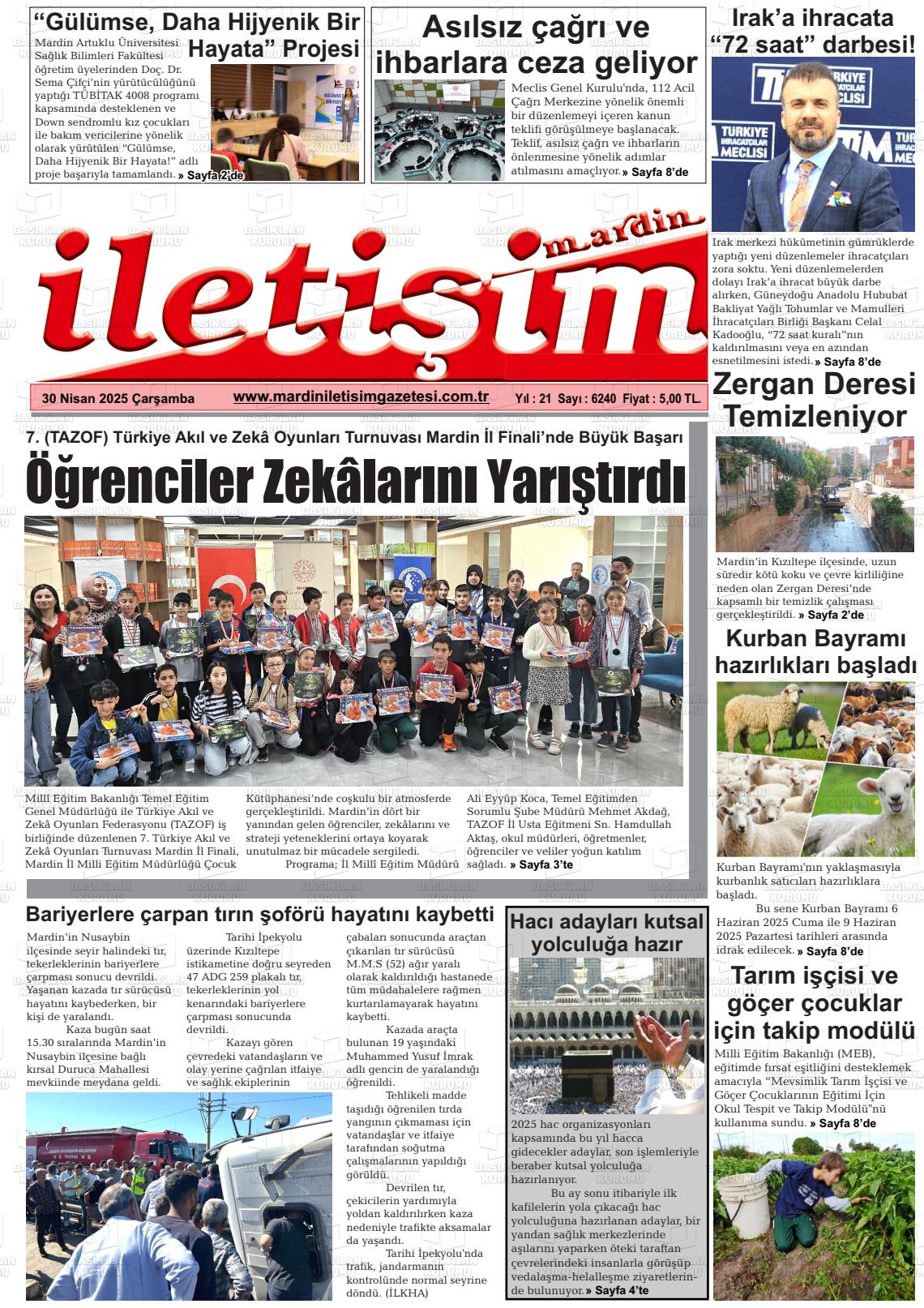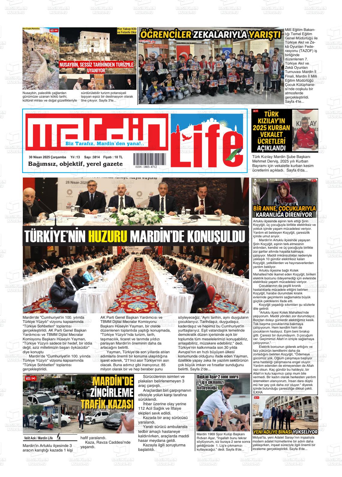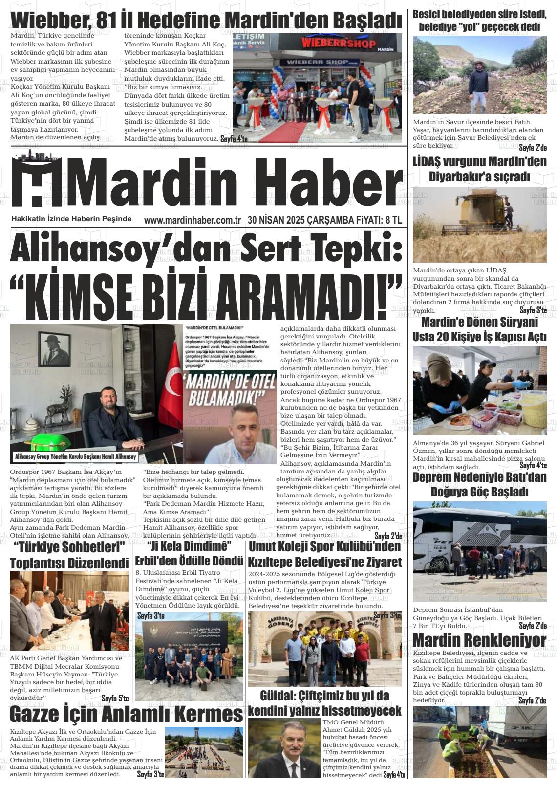 Mardİn Yerel Gazeteleri 08 Ekim 2025, Çarşamba Günü Manşeti