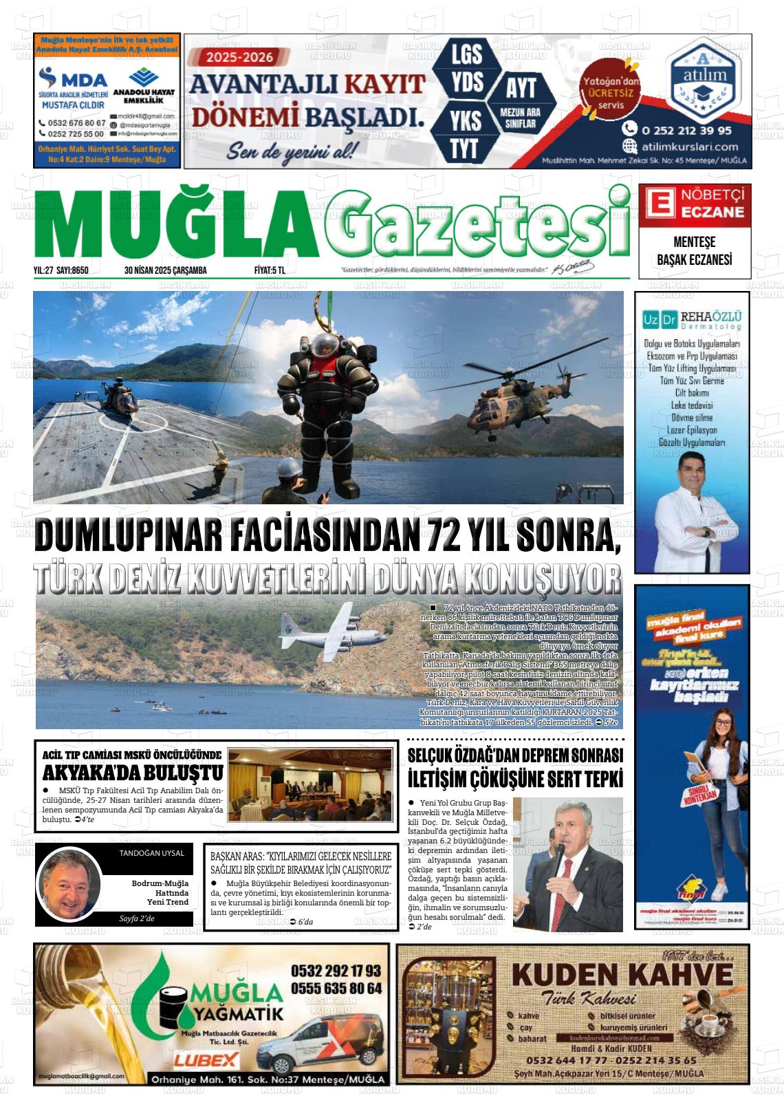 Muğla Yerel Gazeteleri 08 Ekim 2025, Çarşamba Günü Manşeti