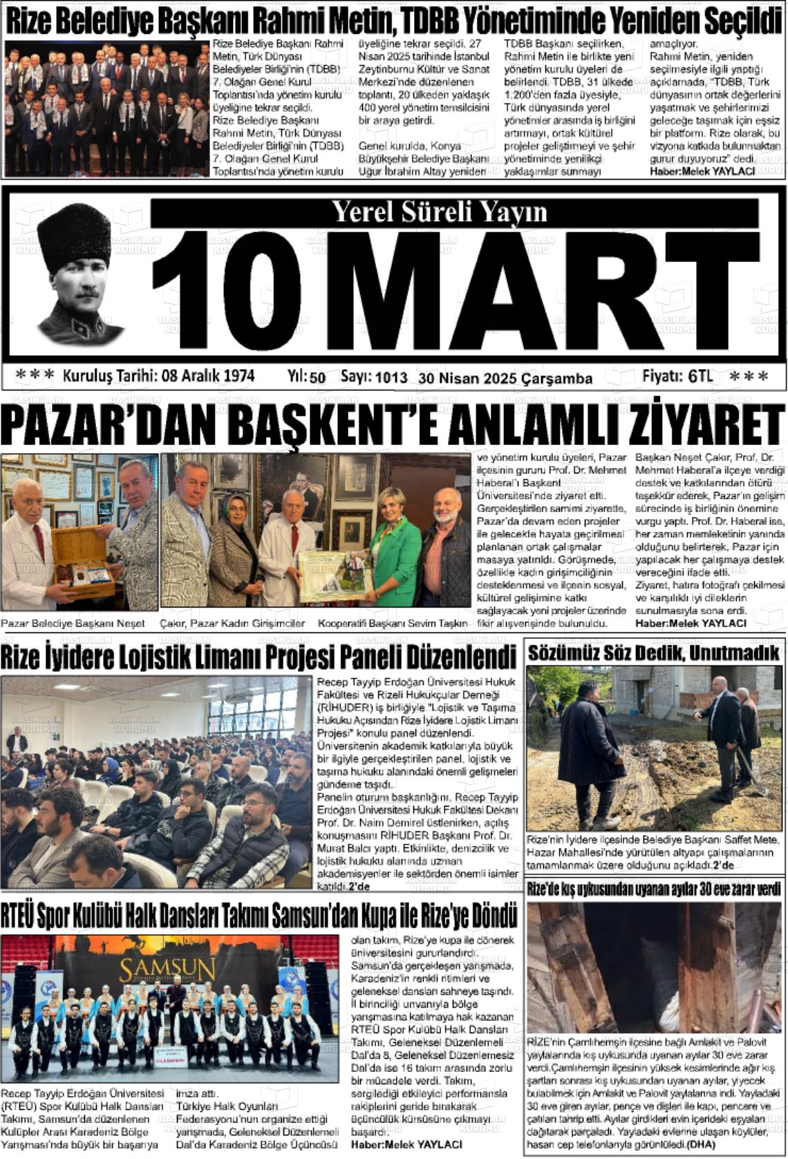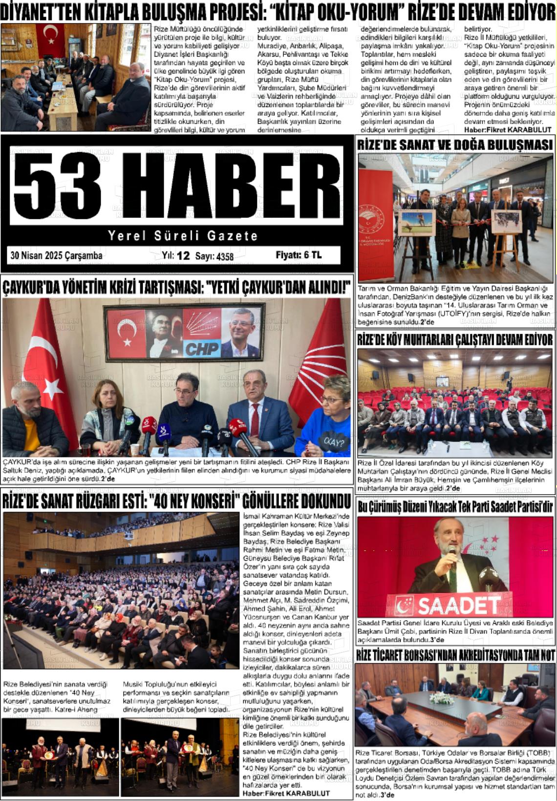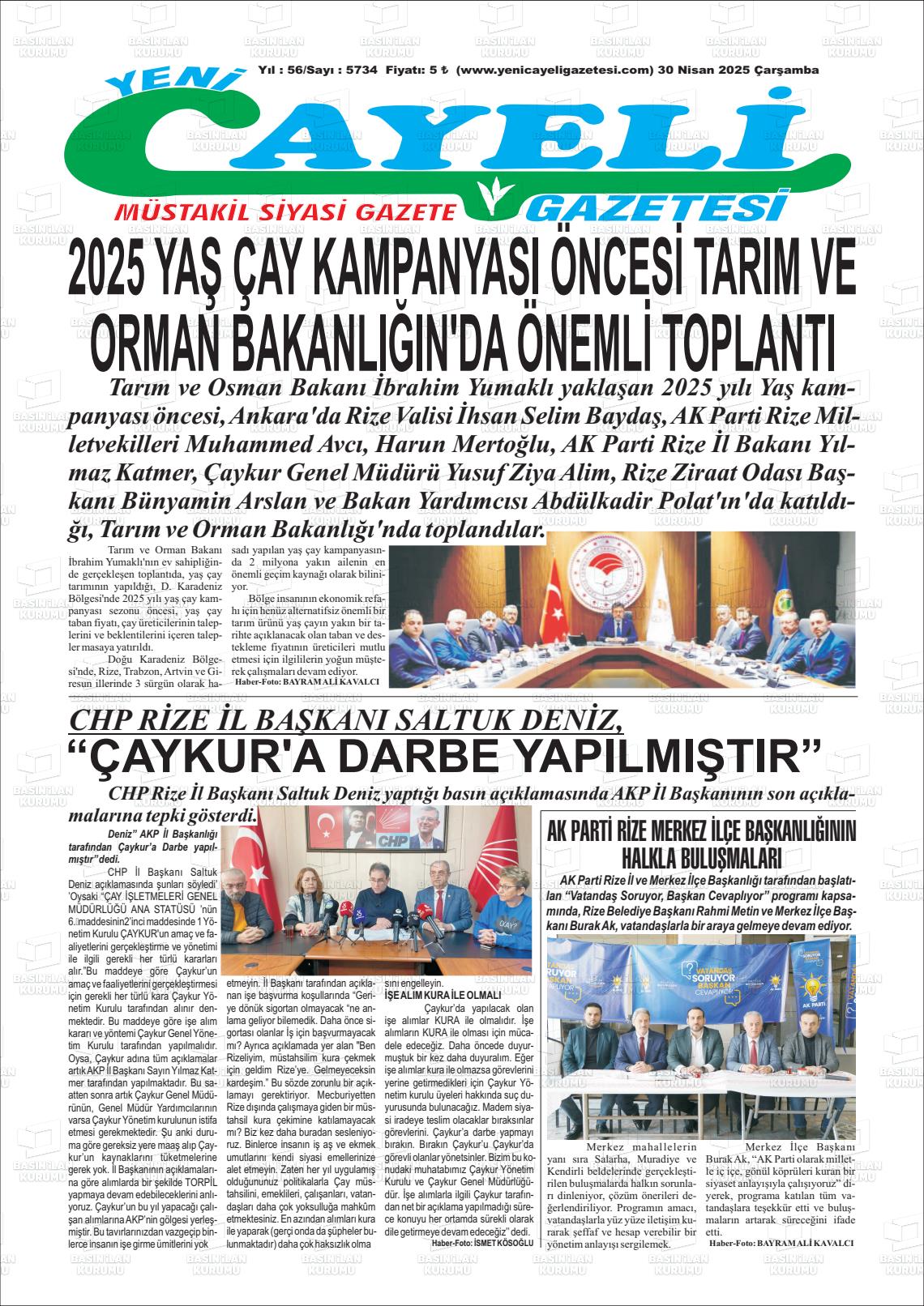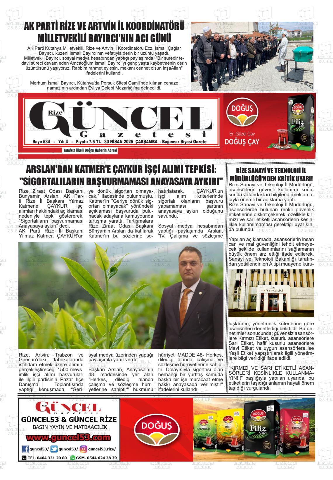 Rİze Yerel Gazeteleri 08 Ekim 2025, Çarşamba Günü Manşeti