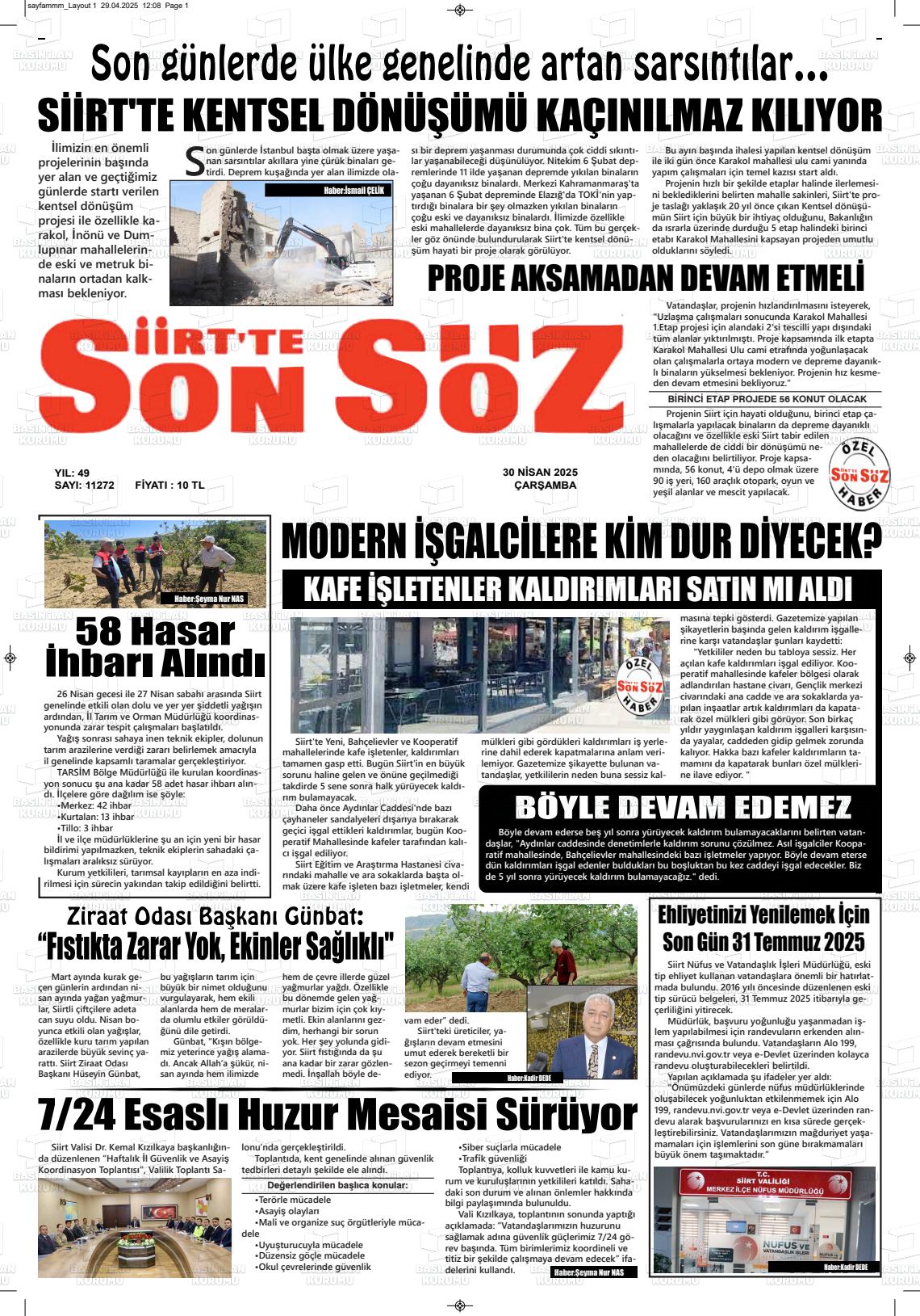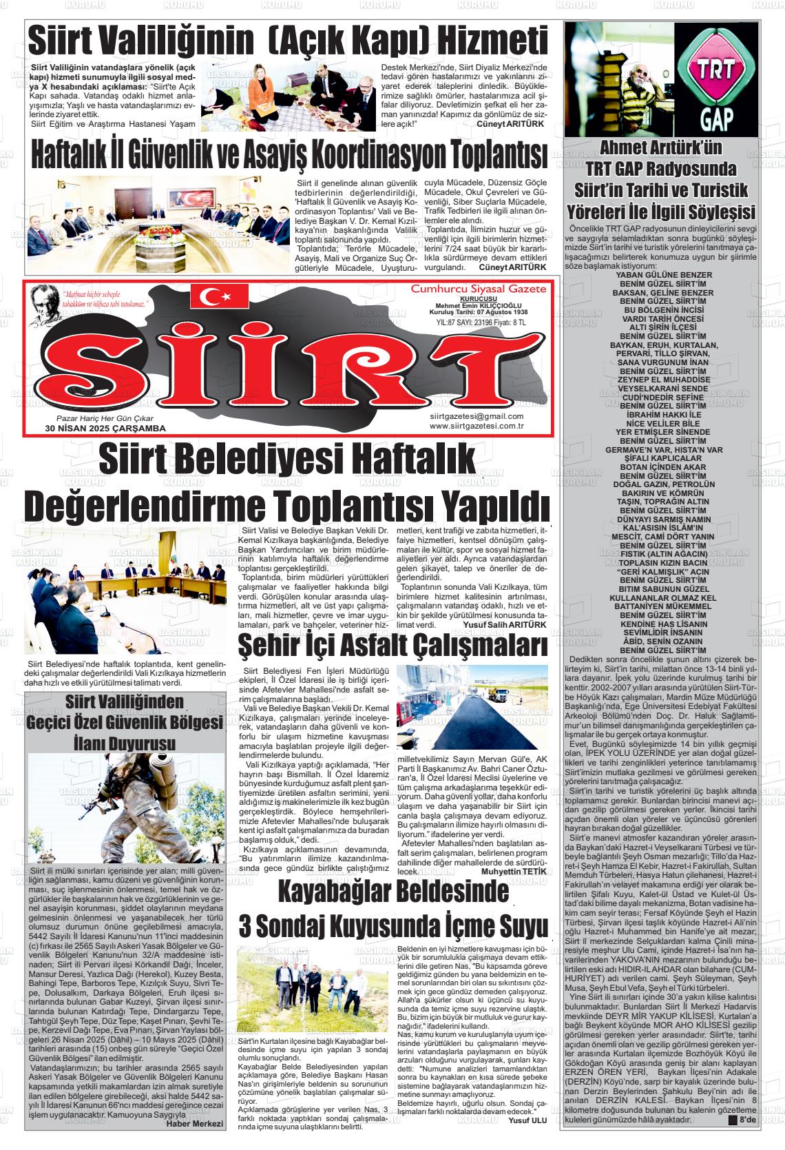 Sİİrt Yerel Gazeteleri 08 Ekim 2025, Çarşamba Günü Manşeti
