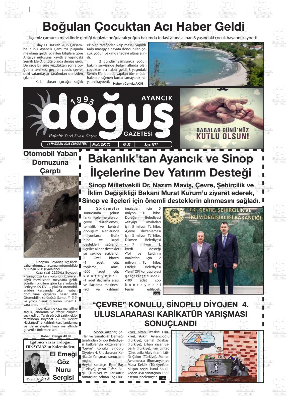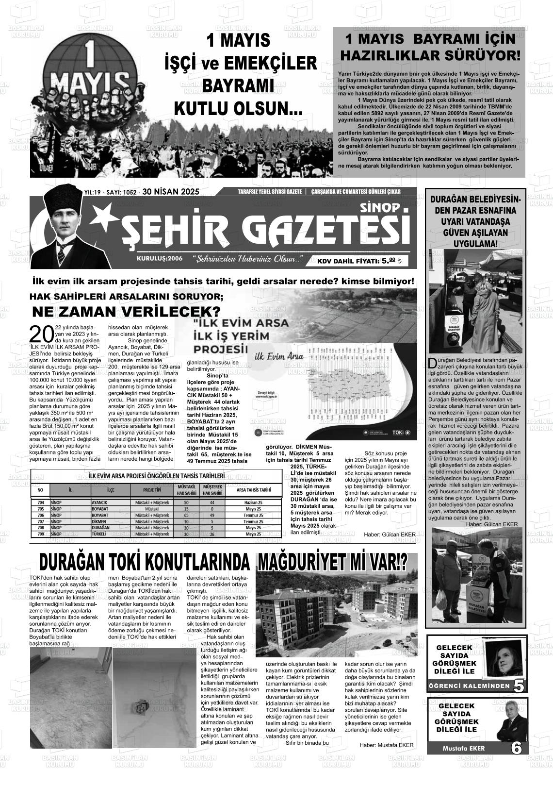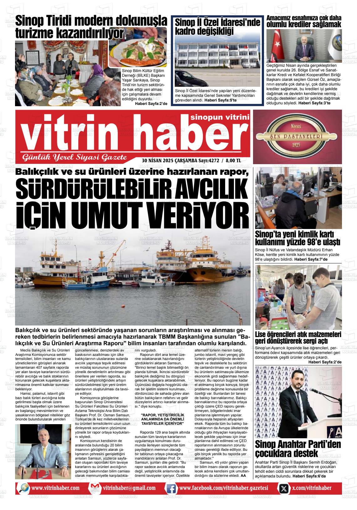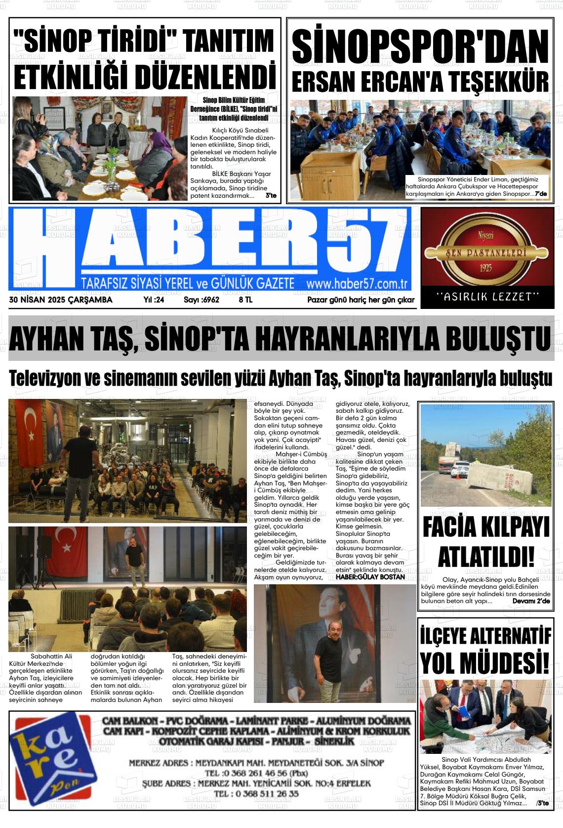 Sİnop Yerel Gazeteleri 08 Ekim 2025, Çarşamba Günü Manşeti