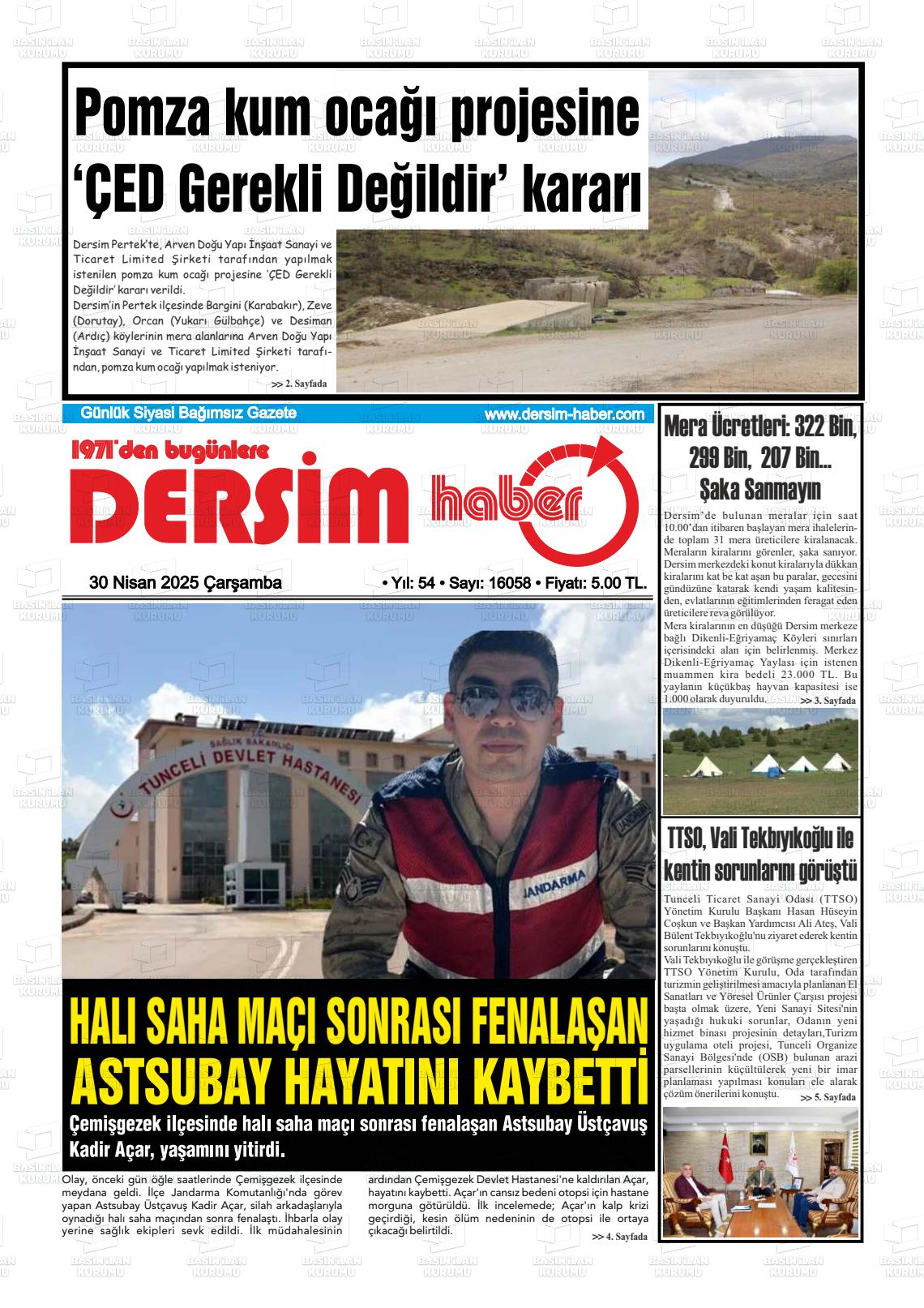 Tuncelİ Yerel Gazeteleri 08 Ekim 2025, Çarşamba Günü Manşeti