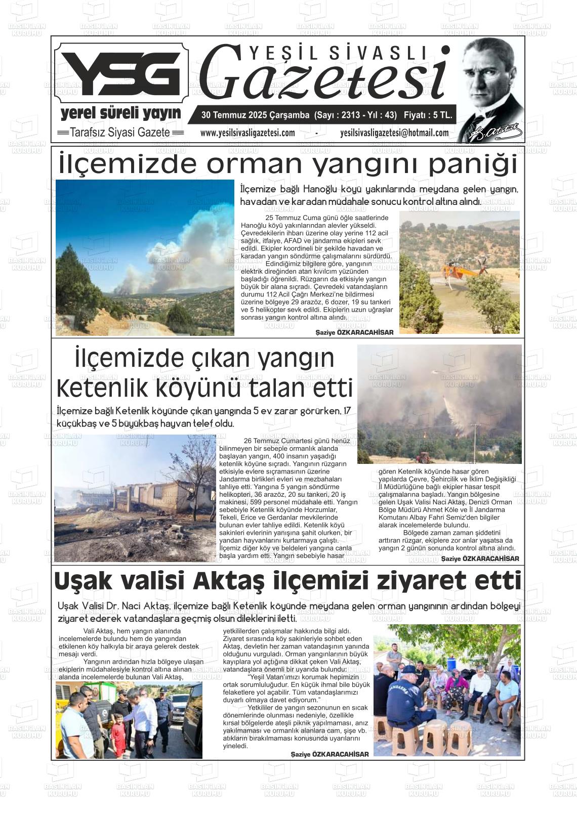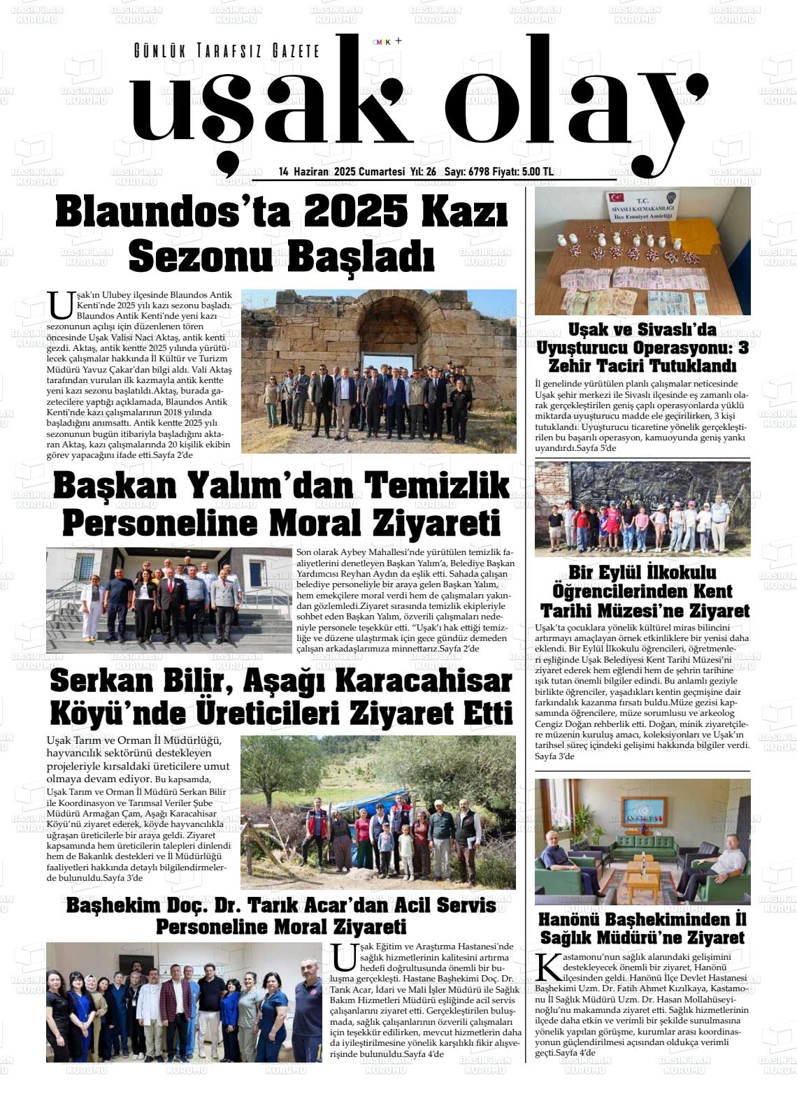 Uşak Yerel Gazeteleri 08 Ekim 2025, Çarşamba Günü Manşeti