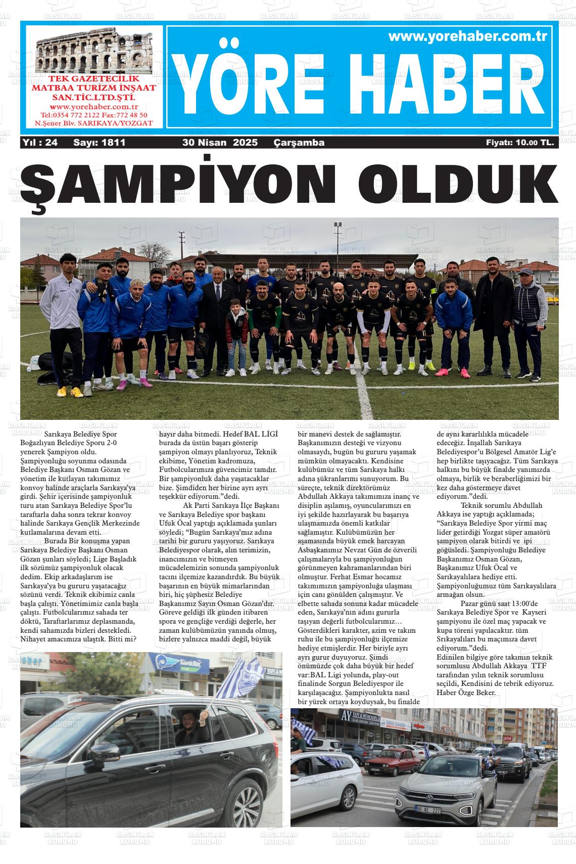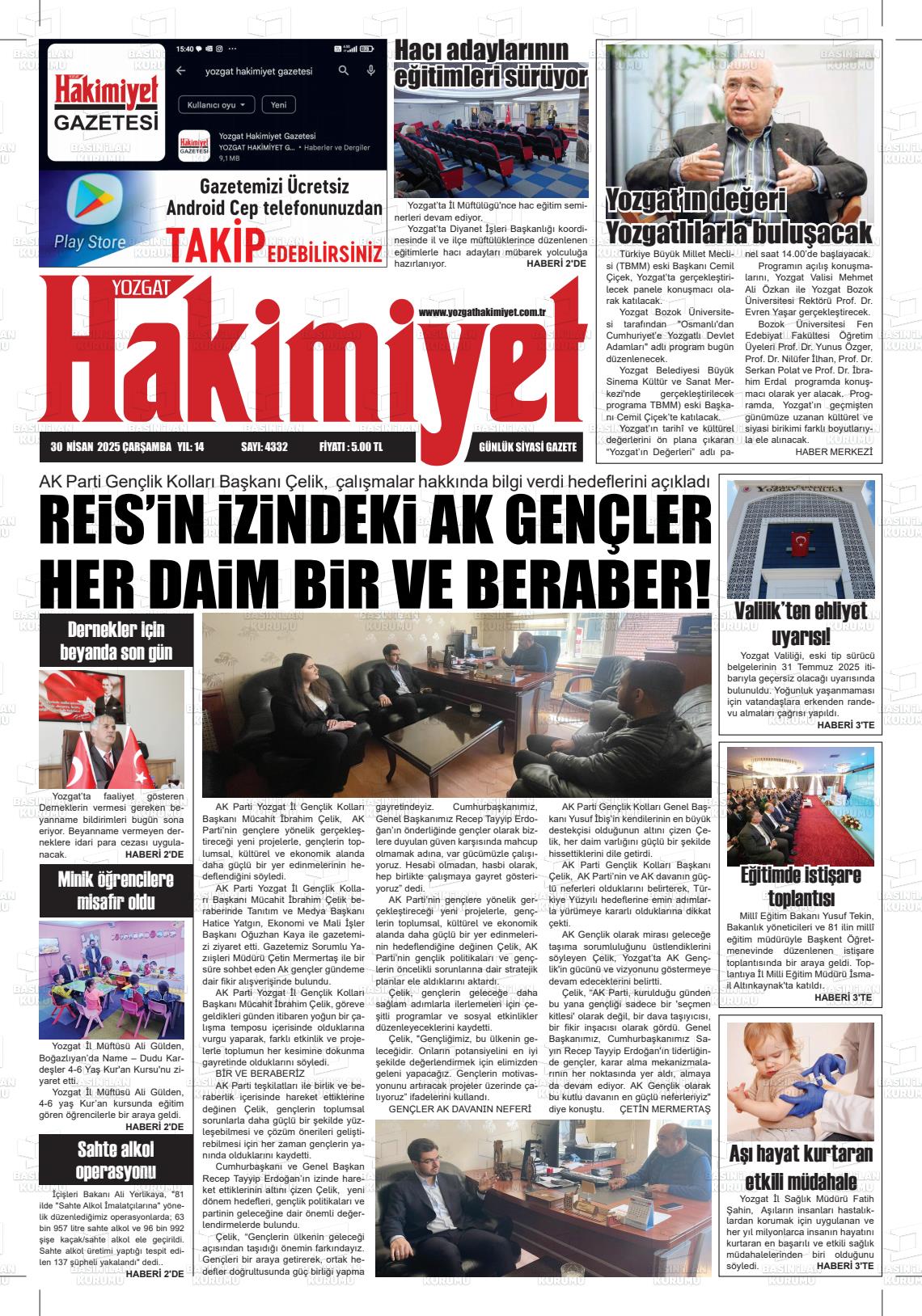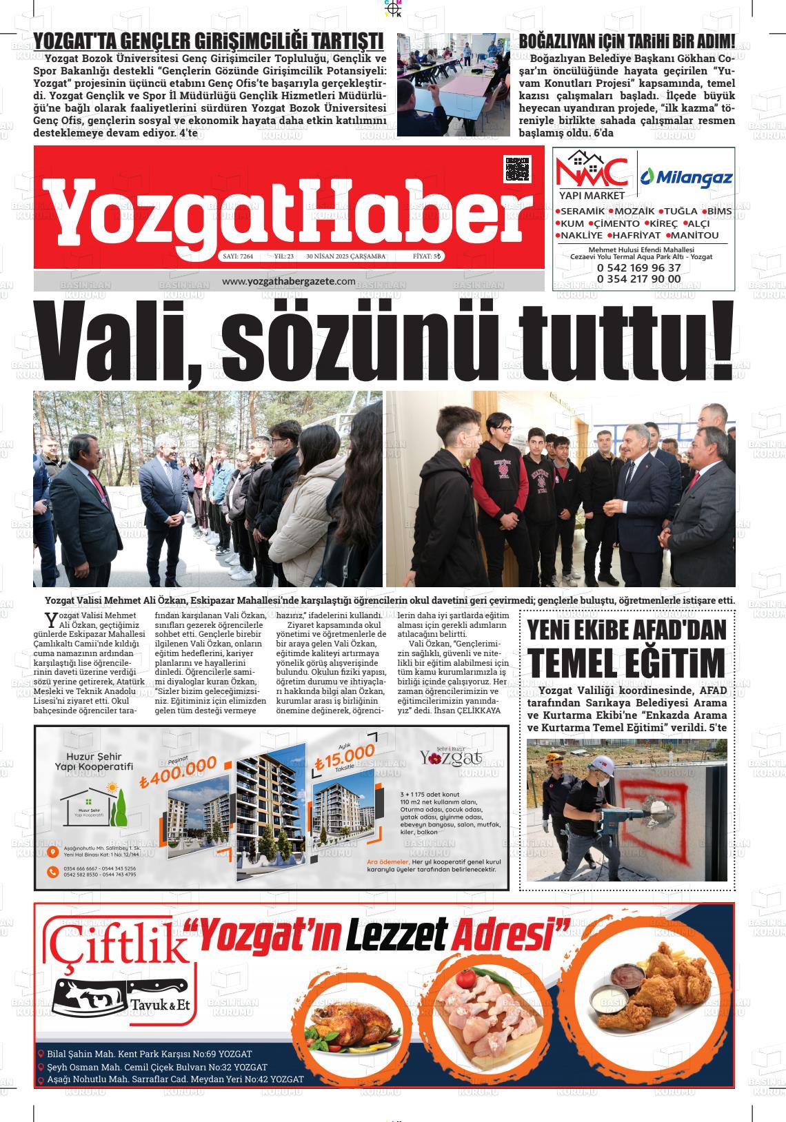Yozgat Yerel Gazeteleri 08 Ekim 2025, Çarşamba Günü Manşeti