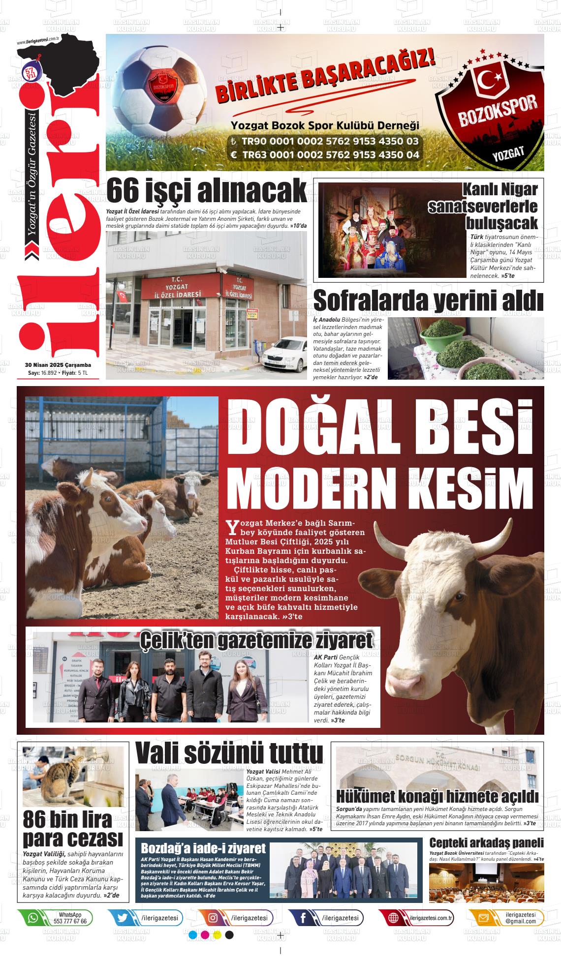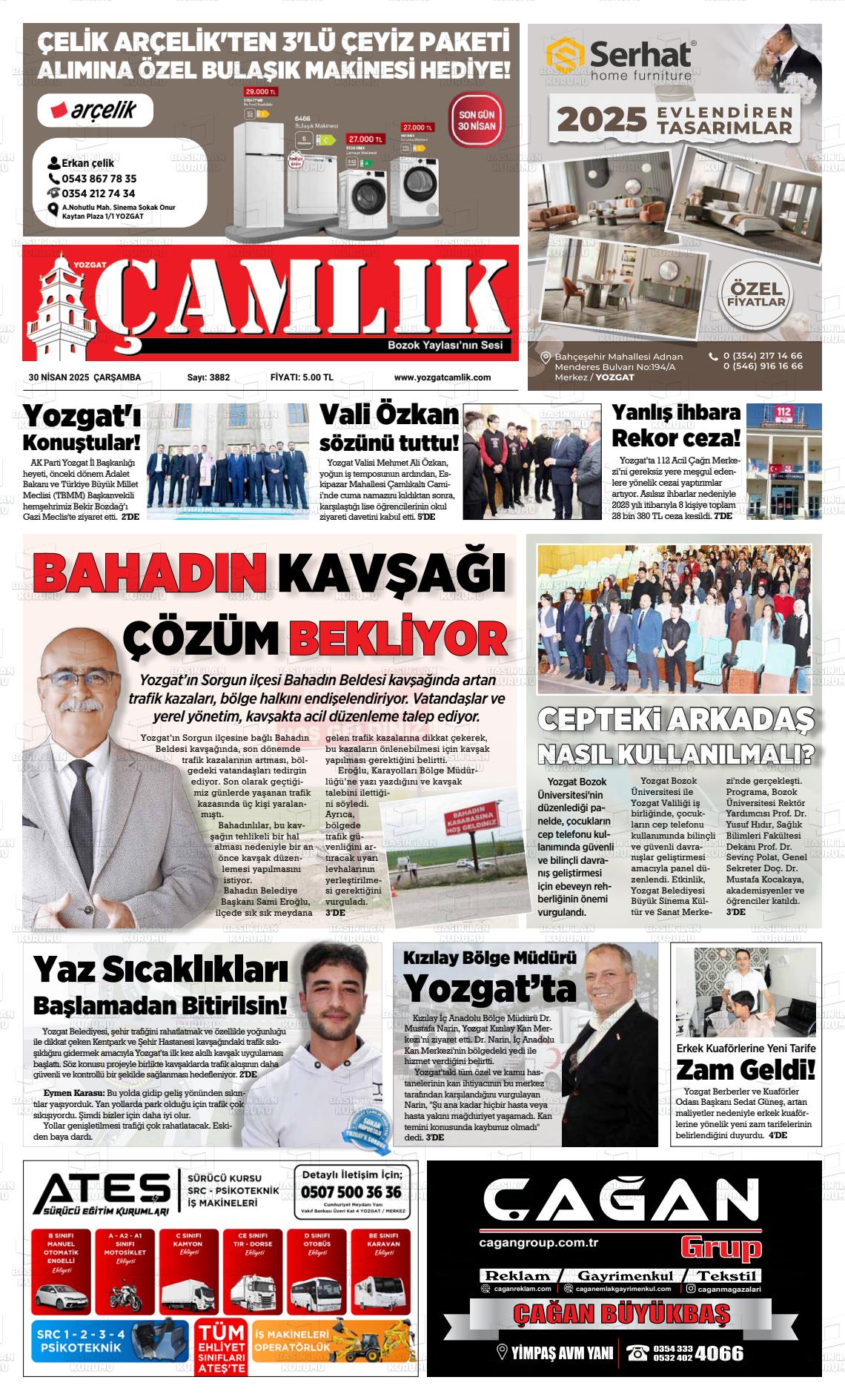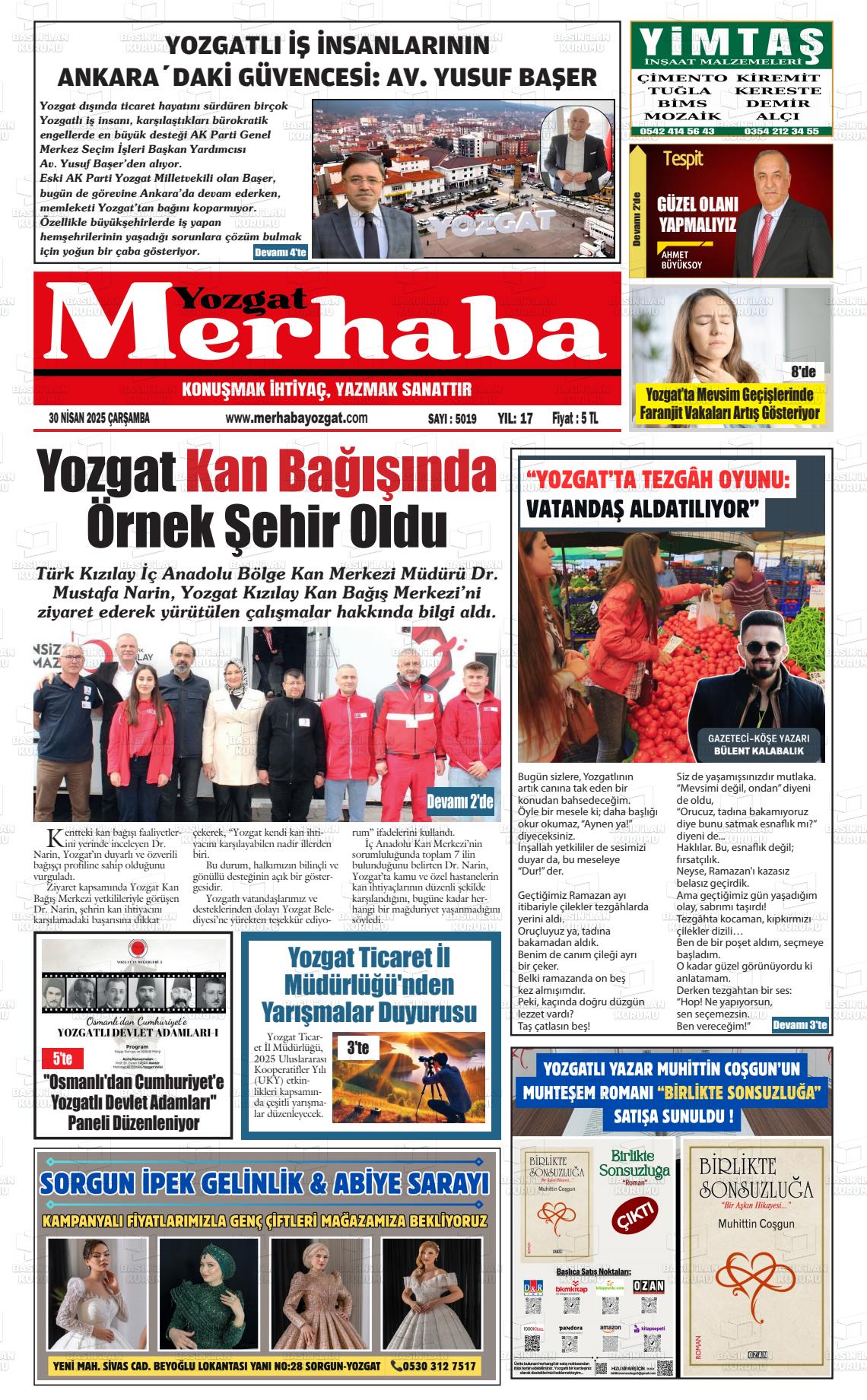 Yozgat Yerel Gazeteleri 08 Ekim 2025, Çarşamba Günü Manşeti