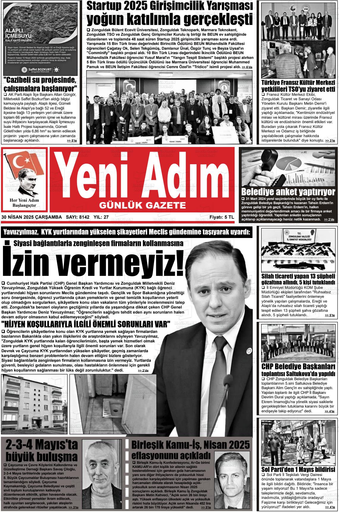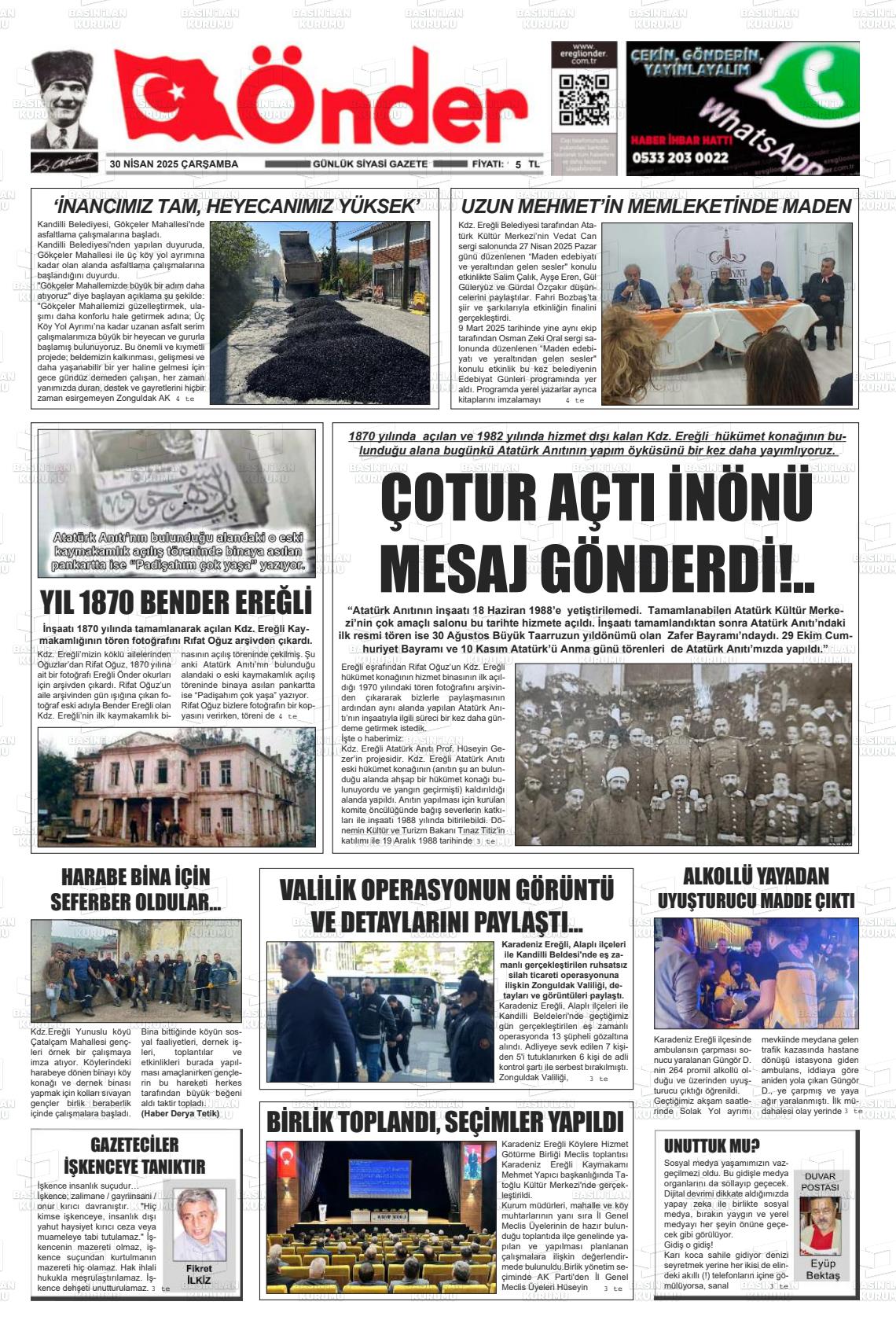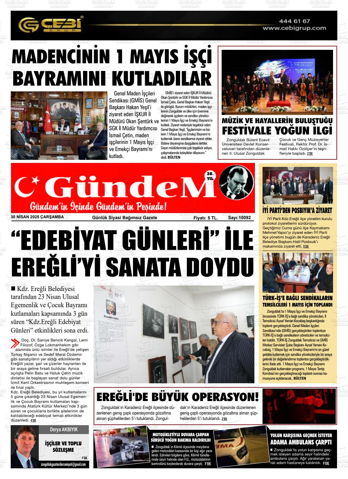 Zonguldak Yerel Gazeteleri 08 Ekim 2025, Çarşamba Günü Manşeti