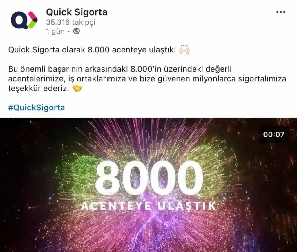 ToggleHareketlilik, Quick Sigorta’nın Türkiye genelinde 8.000 acente sayısına ulaştığını duyurduğu bir görseli sosyal medya hesaplarından paylaşmasıyla başladı. Şirket, ulaştığı bu sayıyı bir başarı göstergesi olarak vurgularken, kısa süre sonra sektörün genç oyuncularından Hepiyi Sigorta cephesinden bu paylaşıma yönelik “manidar” bir yanıt geldi.